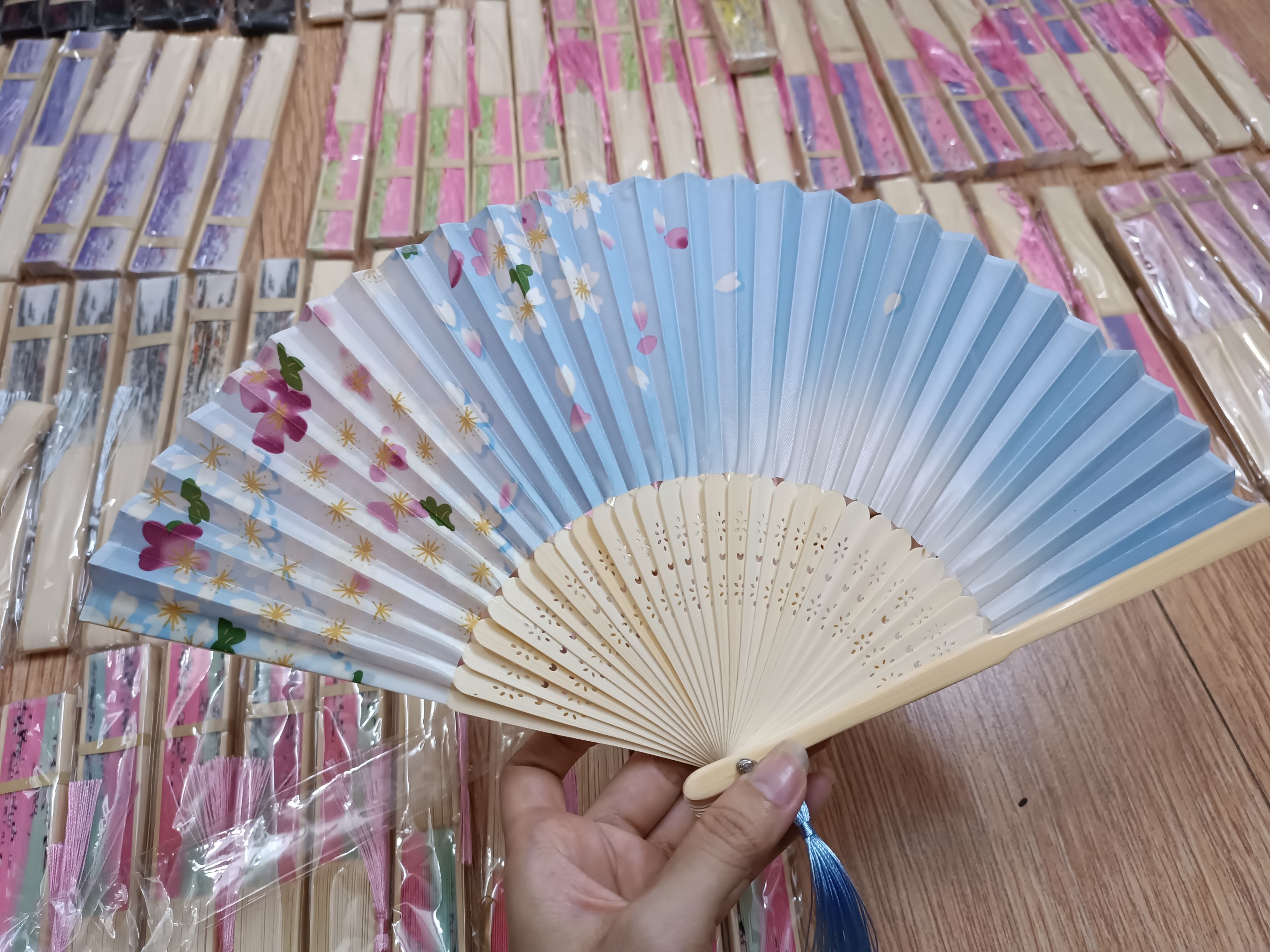 Mô tả: quạt vải Nhật Bản với nhiều mẫu mã đa dạng về màu sắc