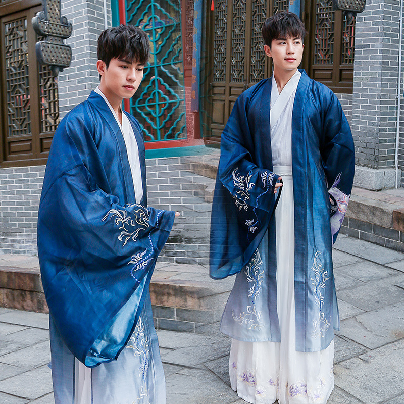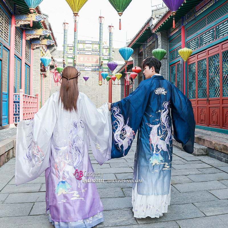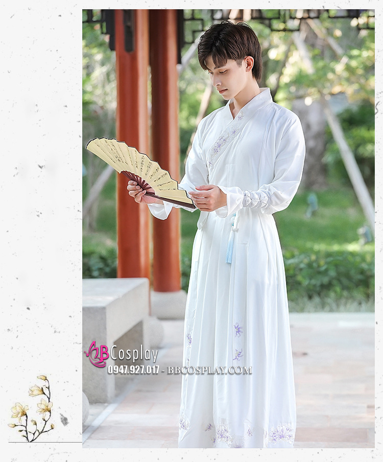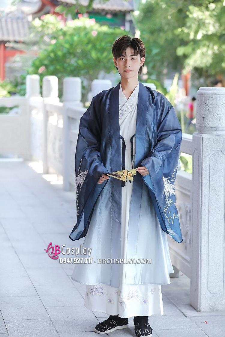 Hán Phục Nam Khoác Xanh Thêu Vĩ Hồ