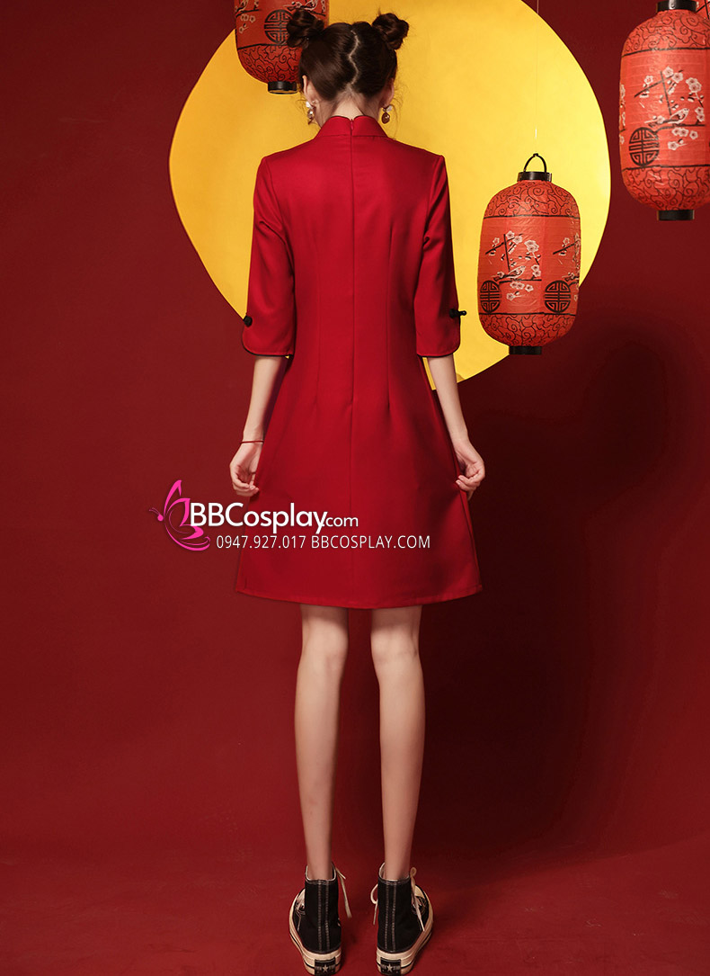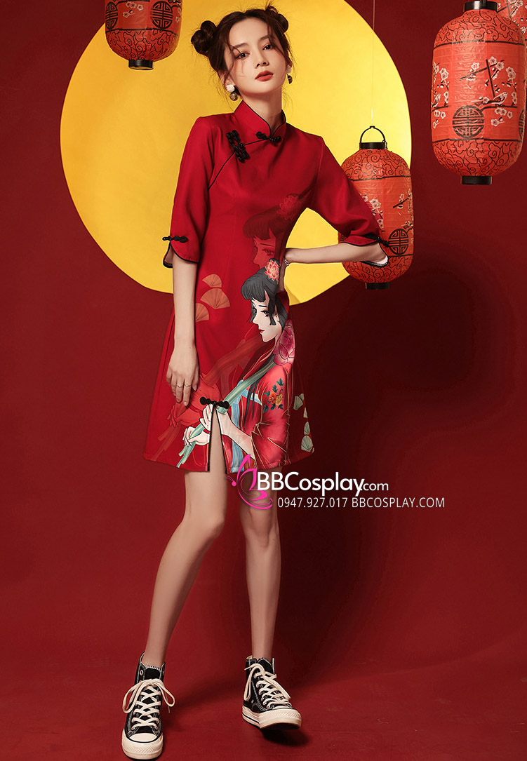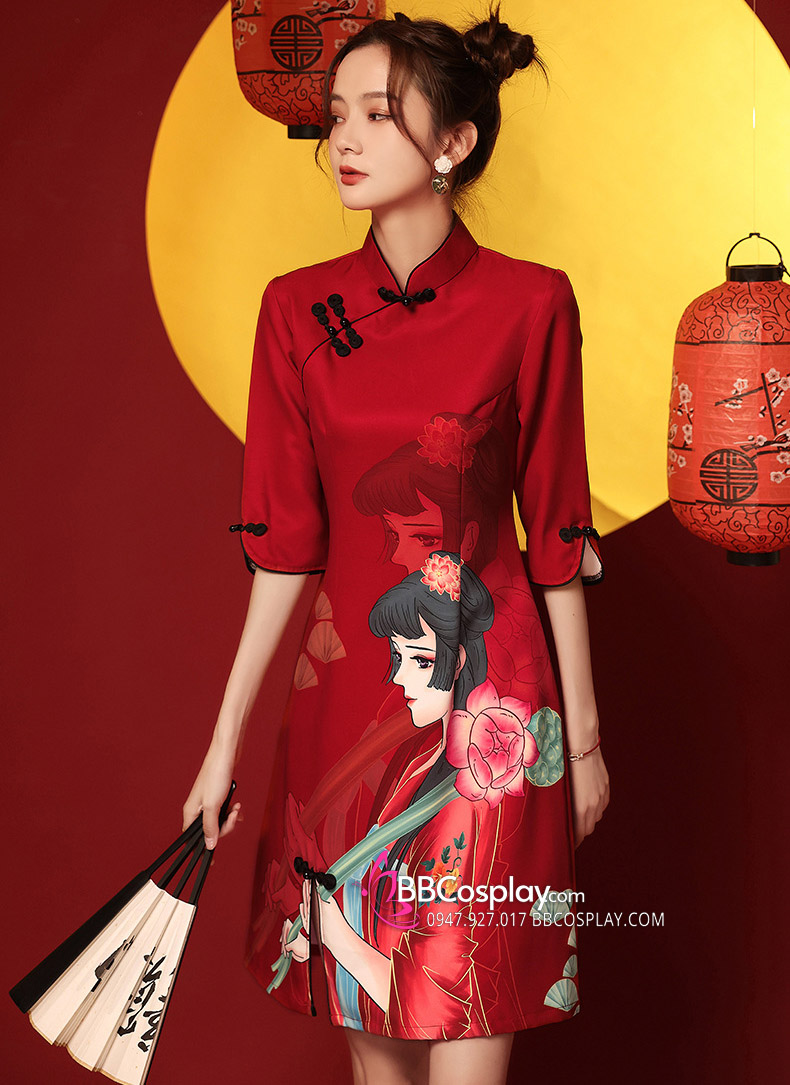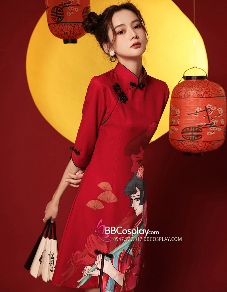 Sườn Xám Cô Gái Trung Hoa Tay Lửng 2023