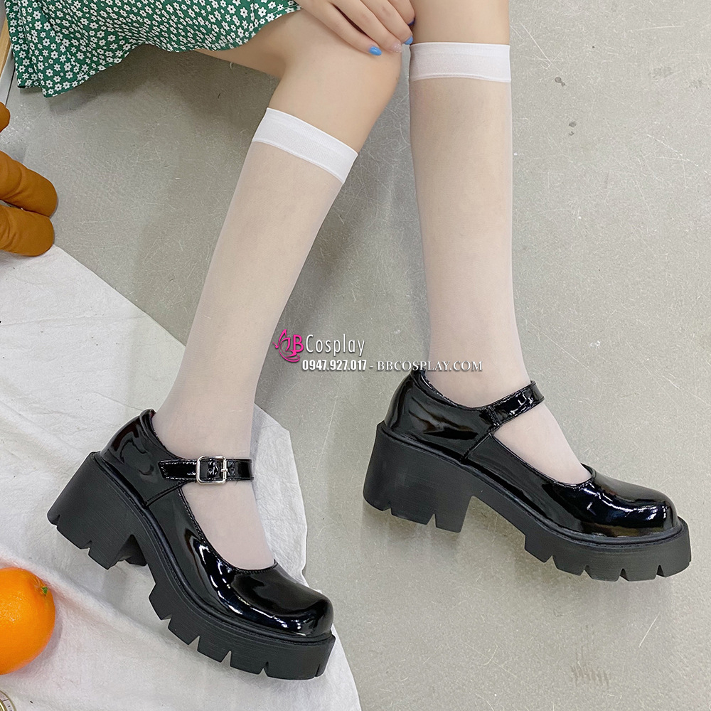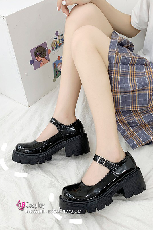 Giày Nữ Sinh Đen Bóng Đế Cao 6cm Siêu Tôn Dáng