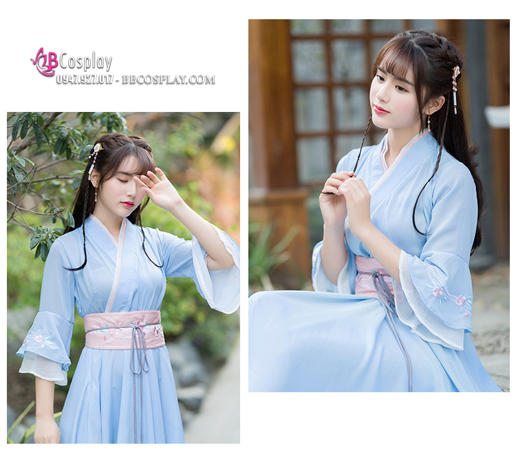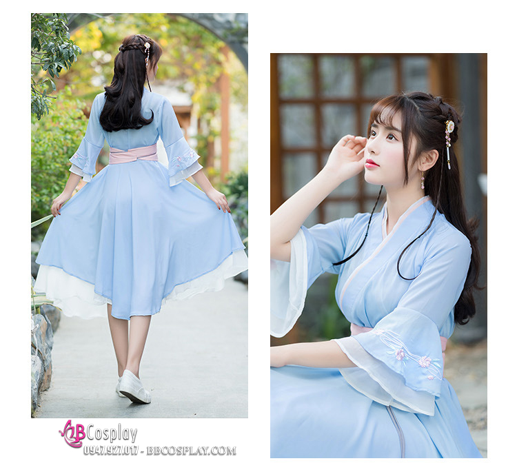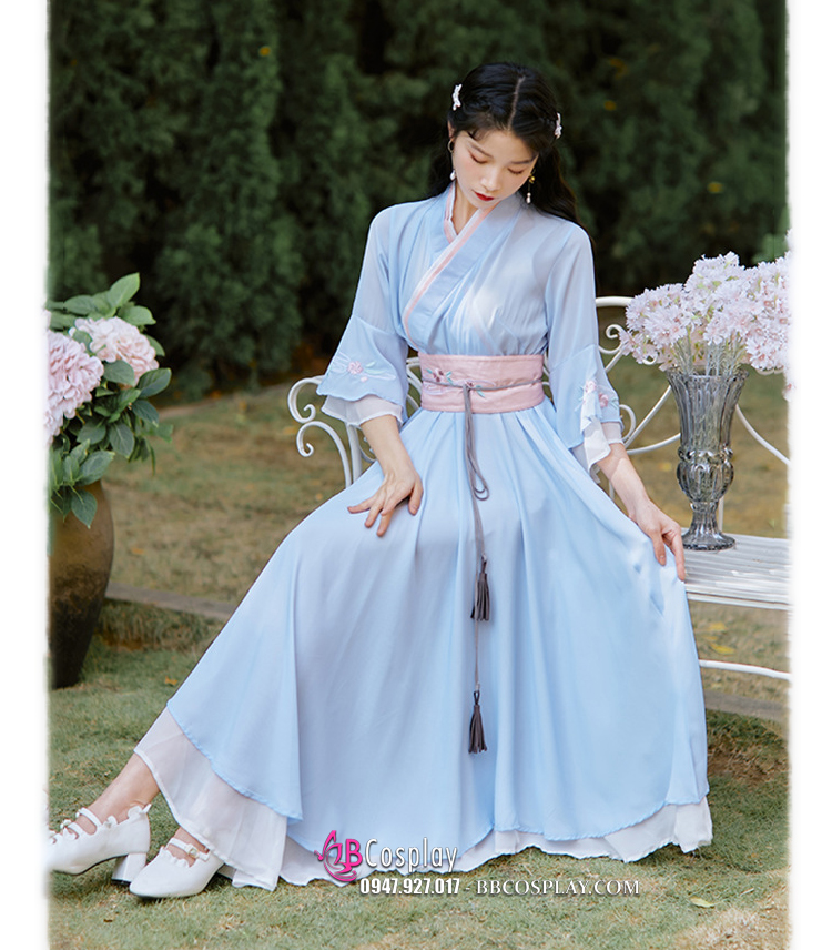 Váy Hán Phục Cách Tân Thắt Lưng Hồng