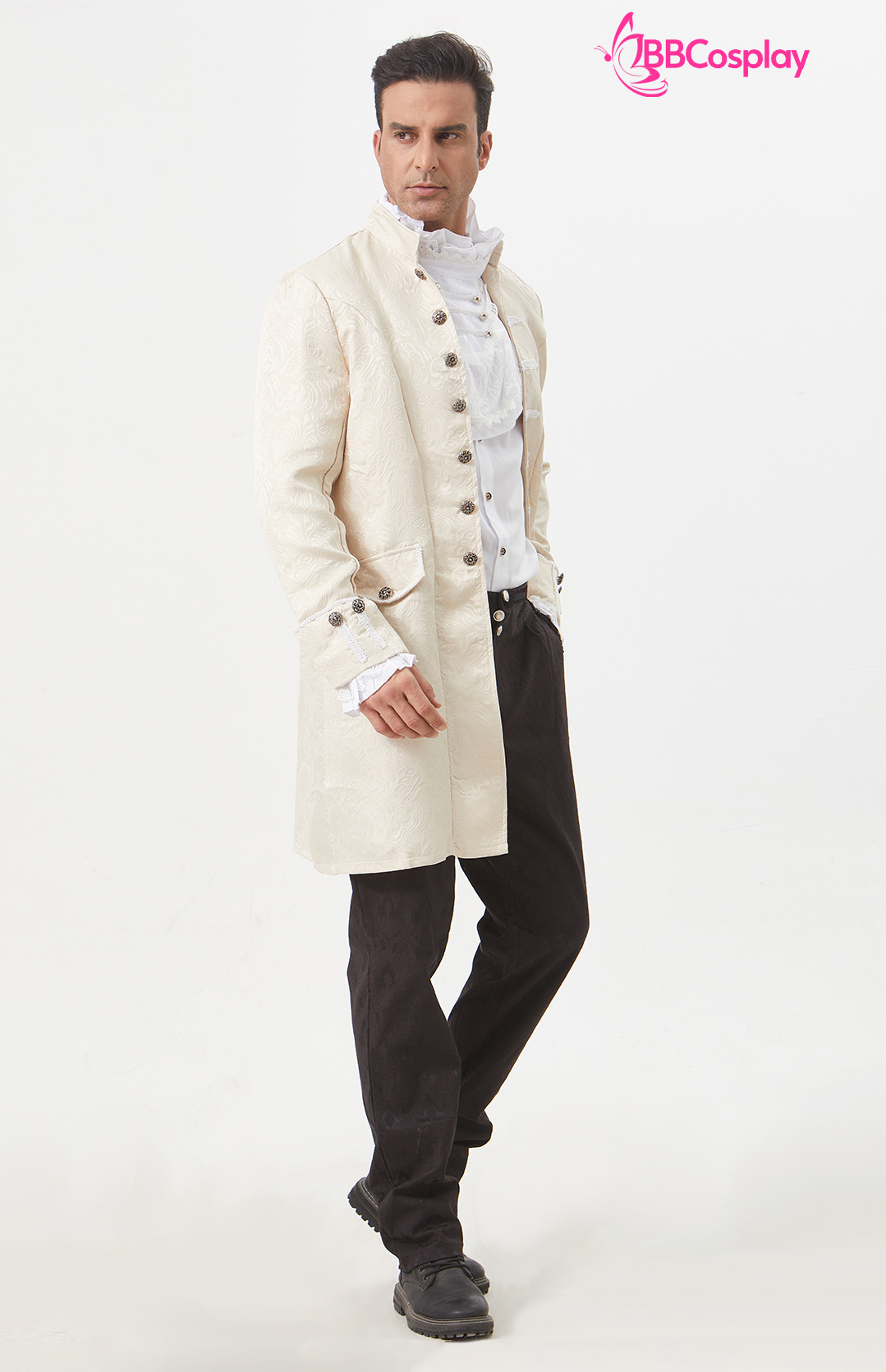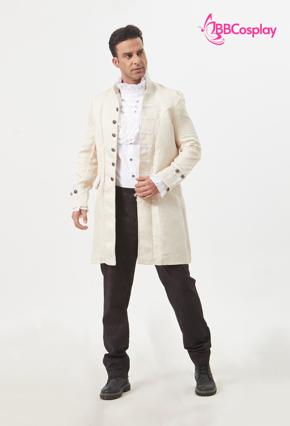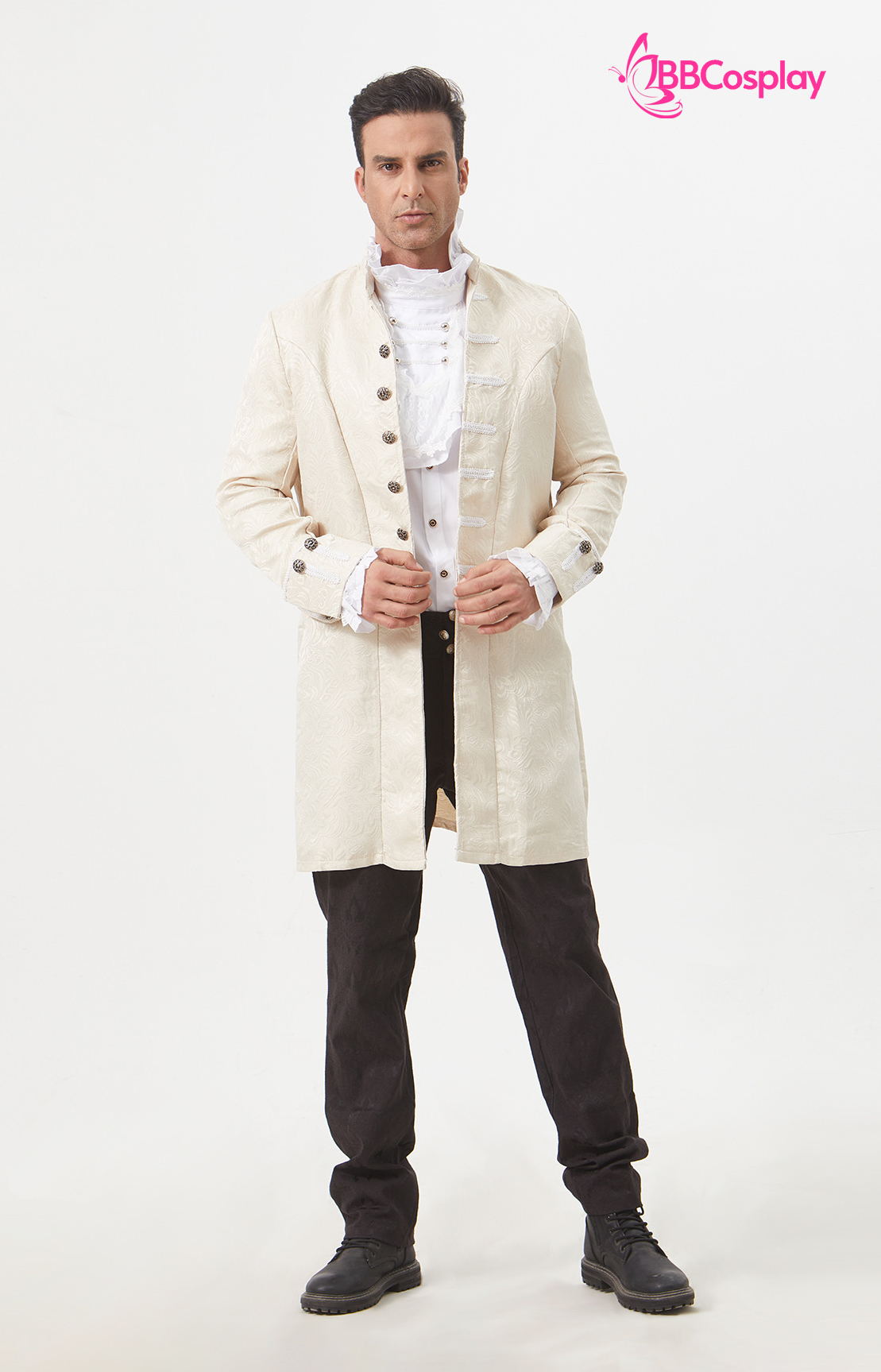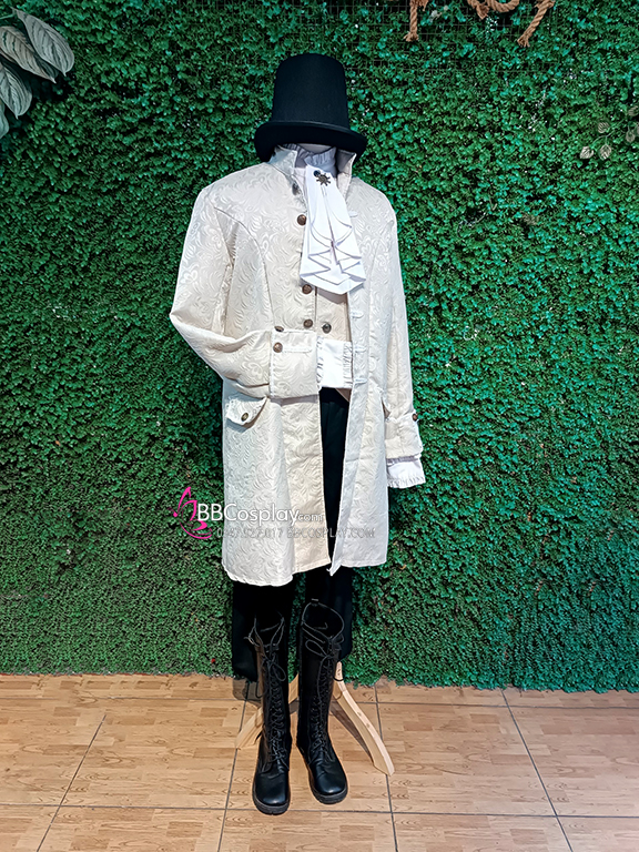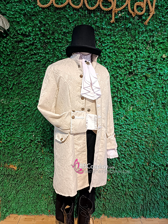 Vest Napoleon + áo sơ mi có kèm bèo + quần tây + giầy boot cao + nón đen cao