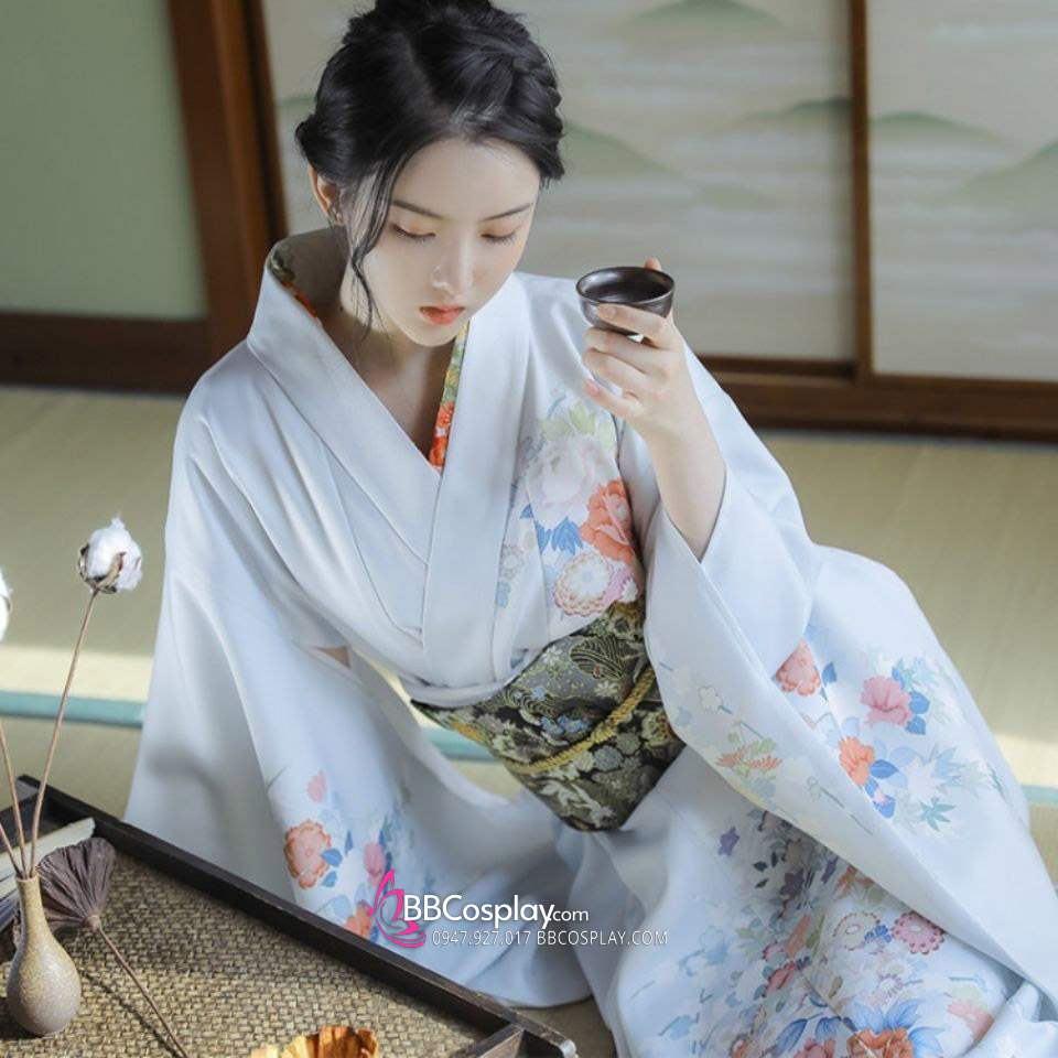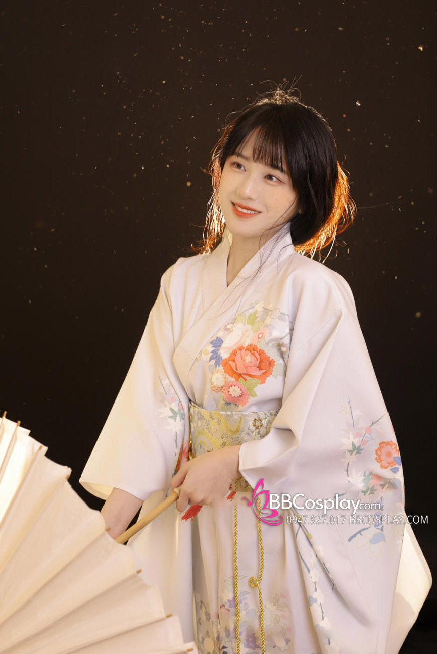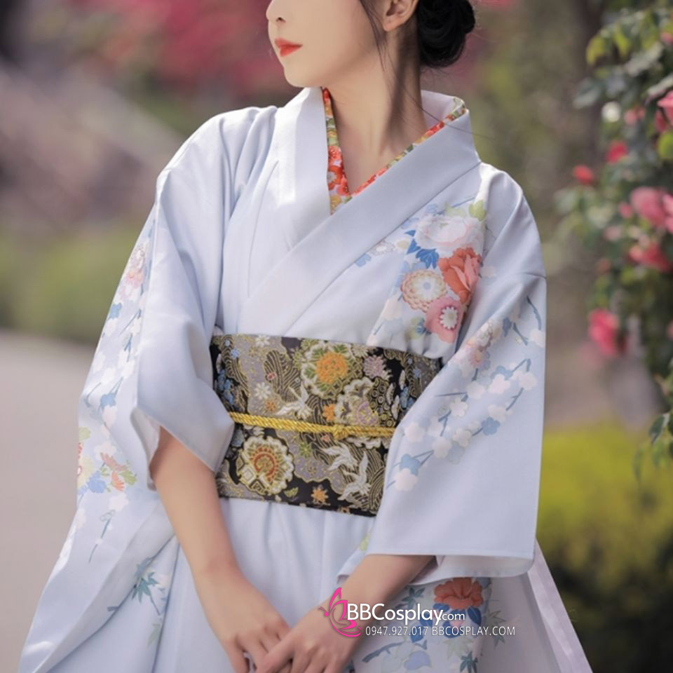 áo + obi ( mẫu tự chọn) + 1 dây đai phụ +1 kanzashi ( ngẫu nhiên)+ guốc gỗ + lót cổ + obi pad + cho mượn kèm quạt xếp