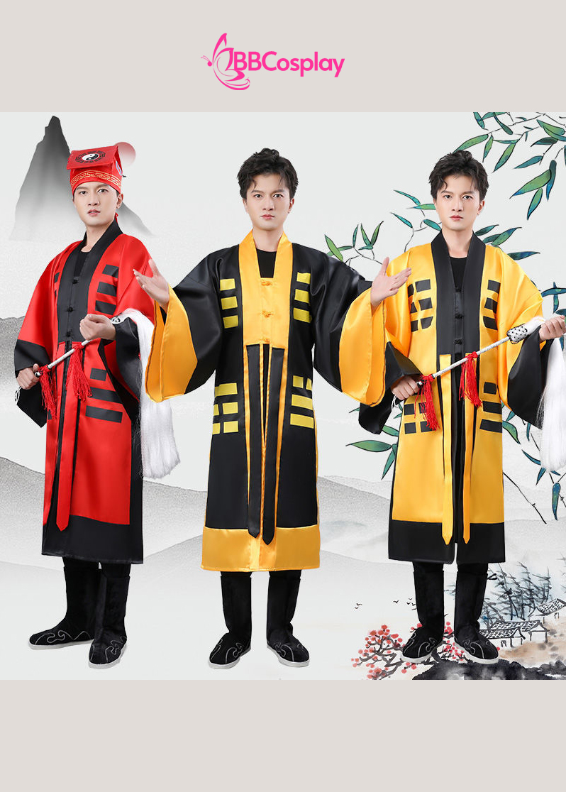 áo khoác đạo sĩ + nón + phất trần + chuông cầm tay + giày cổ trang đen + áo + quần + thắt lưng