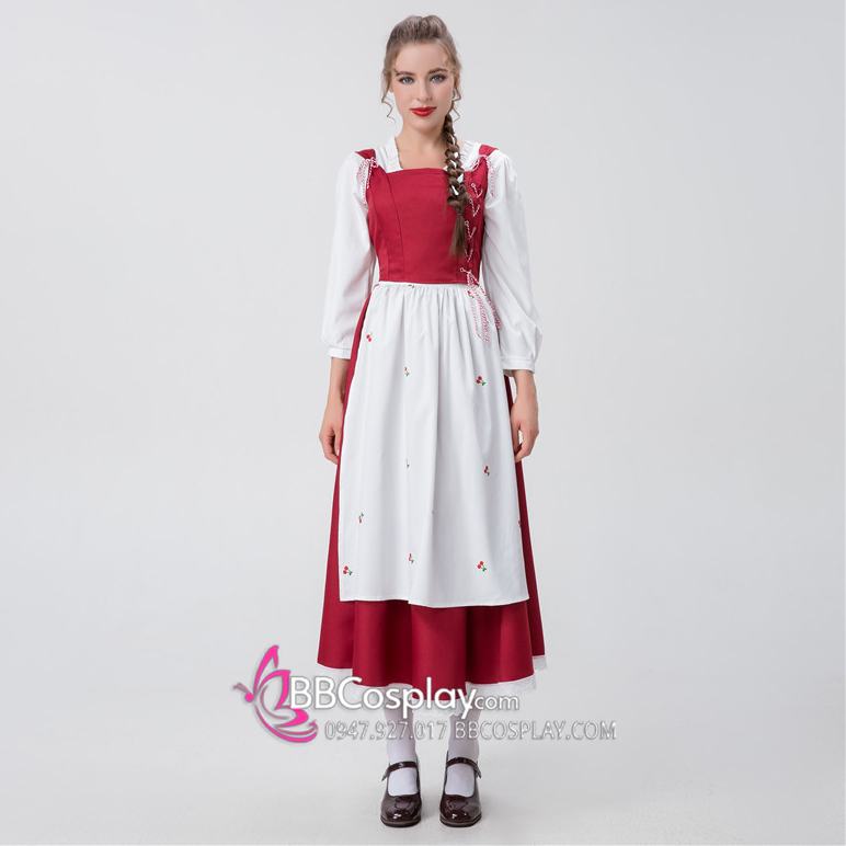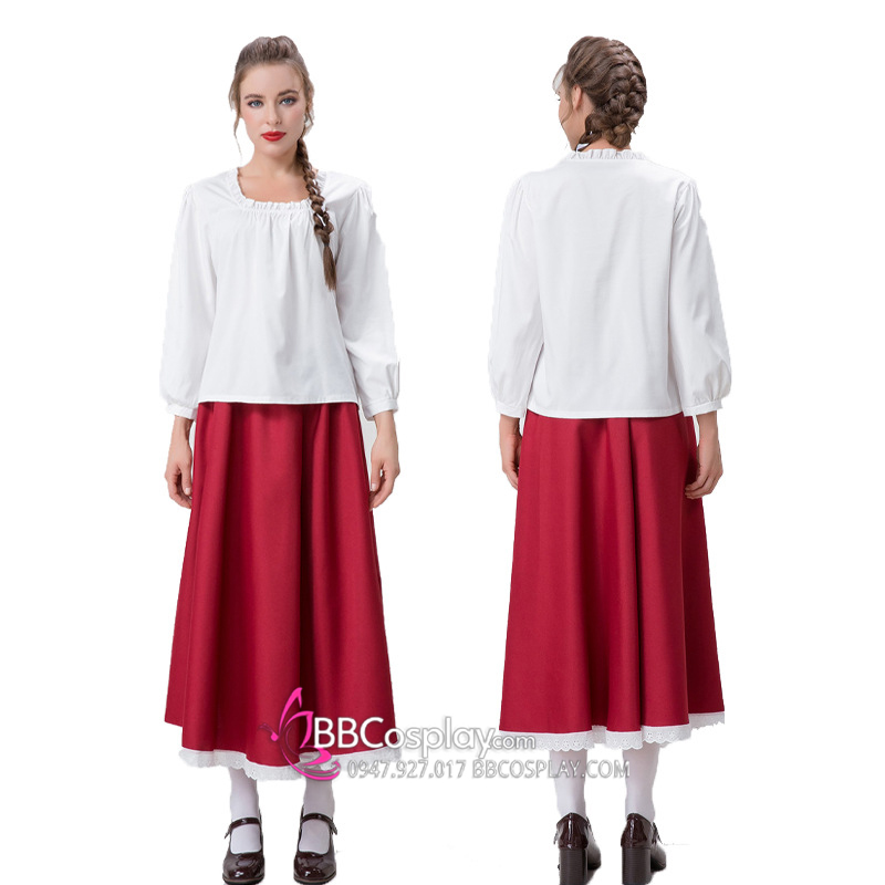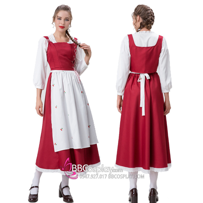 Trang Phục Nàng Hầu Cổ Lá Sen Kèm Tạp Dề Caro - Màu Đỏ