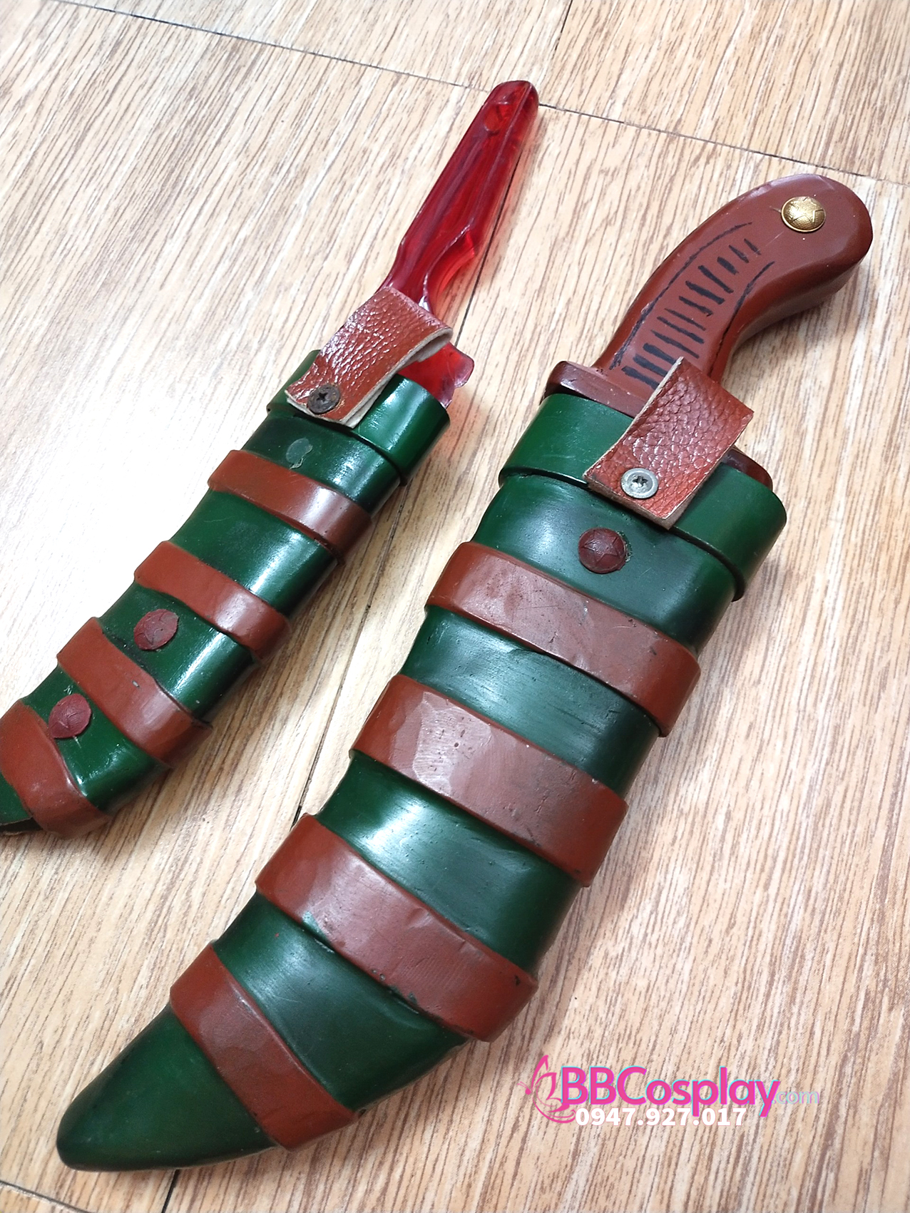 Trang Phục Nàng Hầu Cổ Lá Sen Kèm Tạp Dề Caro - Màu Đỏ