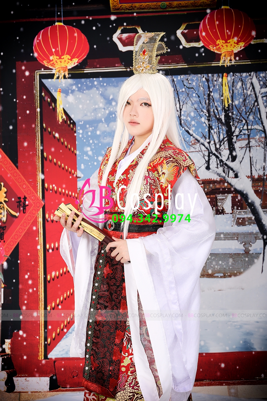 váy dài + áo gấm trắng + áo gấm đỏ rồng + đai