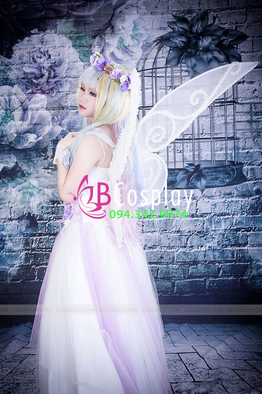 Đồ Nàng Hầu Maid Xanh Dương Tạp Dề Trắng Kèm Nhiều Nơ