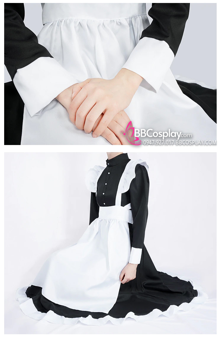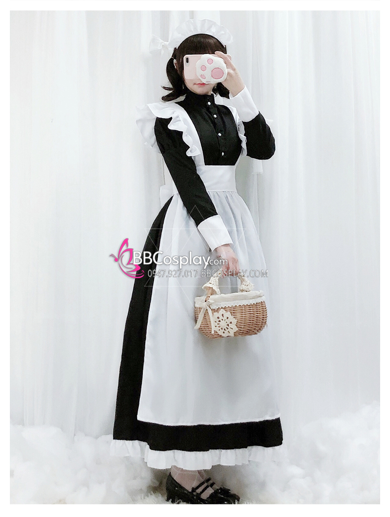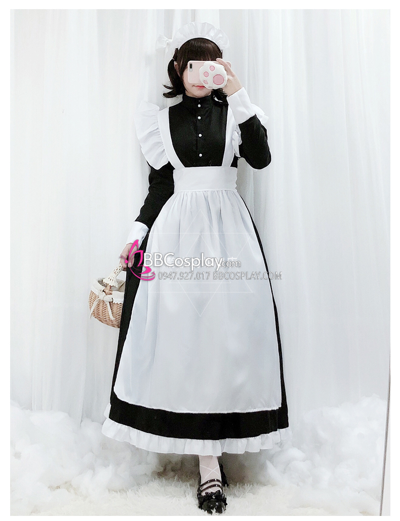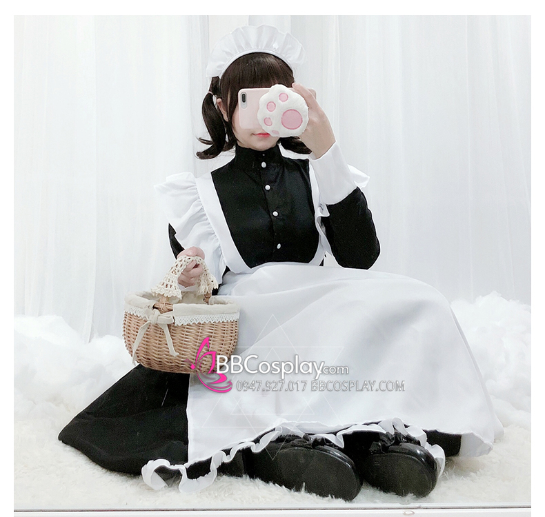 Đồ Nàng Hầu Maid Đen Tạp Dề Trắng Kèm Nhiều Nơ