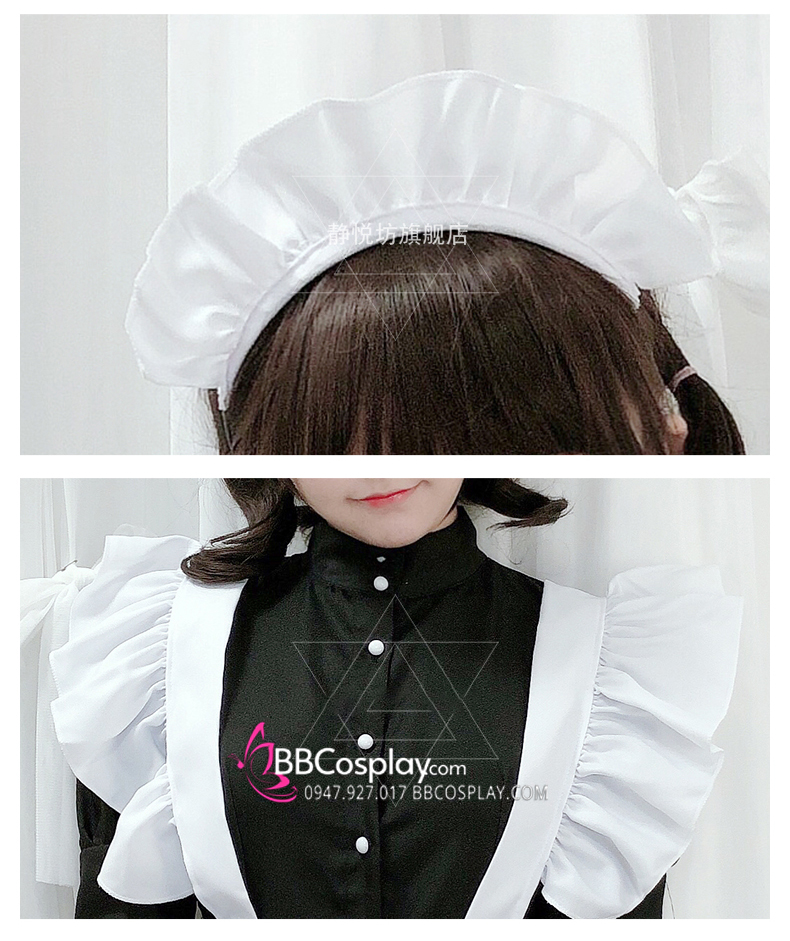 Trang Phục Nàng Hầu Nhật Đen Tạp Dề Trắng Cổ Áo Lá Sen