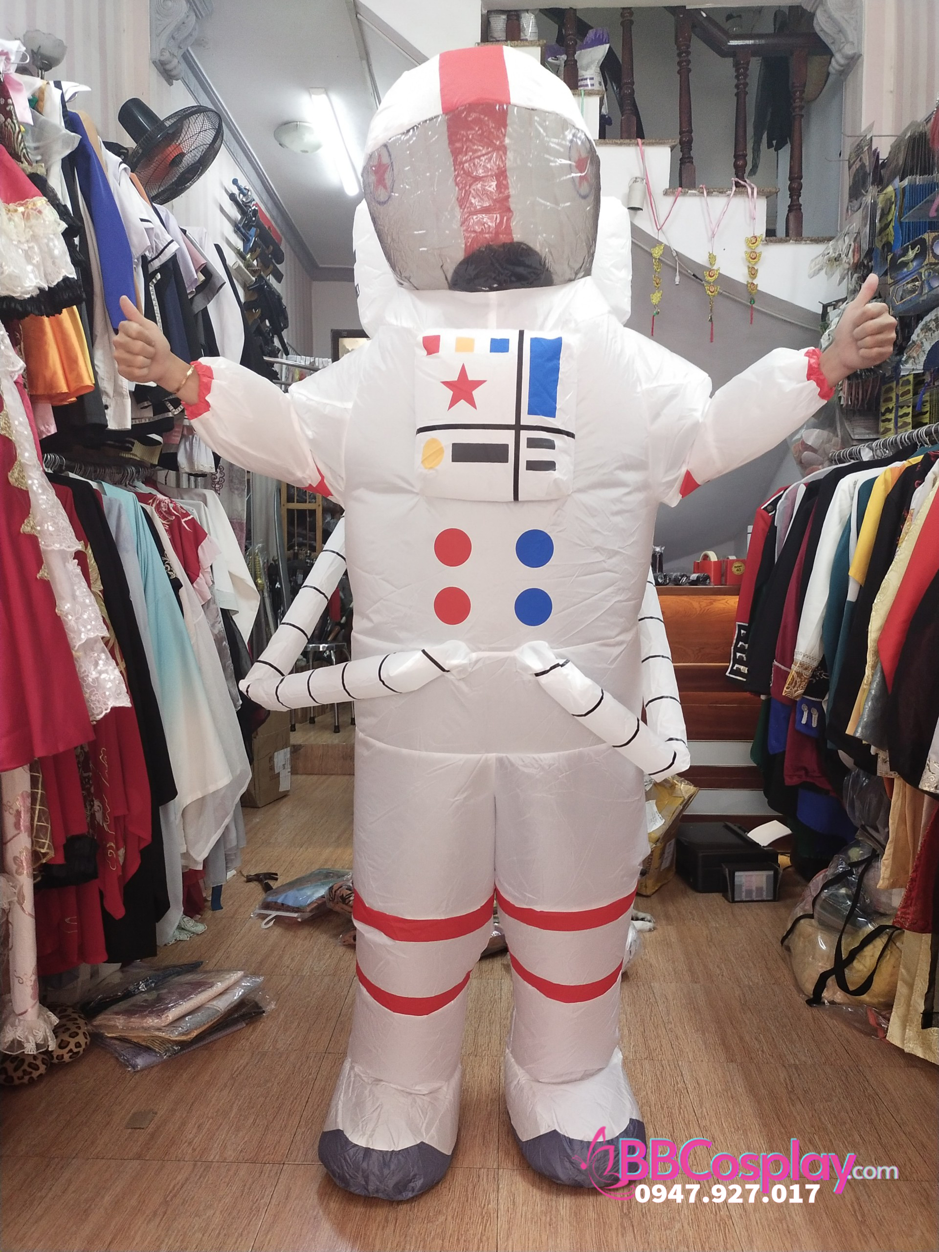phi hành gia bơm hơi + bộ quạt kèm sạc pin AA
