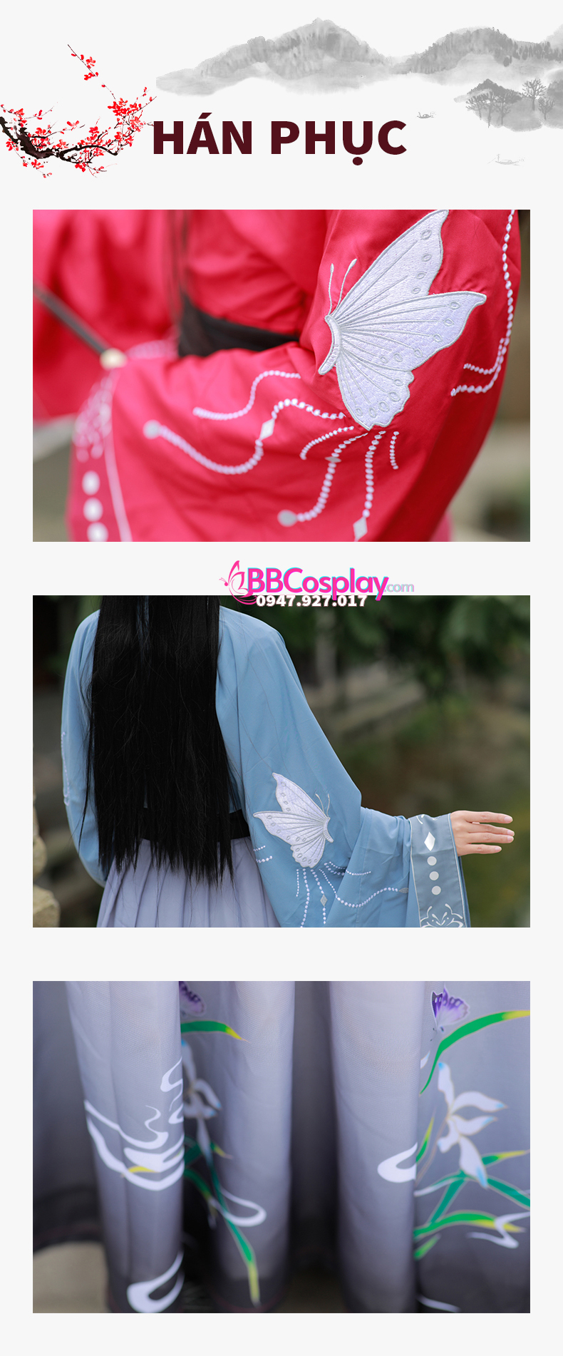 BBCosplay cung cấp dịch vụ thuê mua nhiều loại phụ kiện và trang phục cho hóa trang, chụp ảnh, biểu diễn. Nếu bạn có nhu cầu sở hữu hán phục Dương Vũ Điệp có thể tìm trên các trang bán hàng của BBCosplay hoặc ghé địa chỉ 118/19 Bạch Đằng, P.24, Q. Bình Thạnh, TP.HCM để trực tiếp xem sản phẩm. Ngoài ra, khách hàng có thể gọi hotline BBCosplay để được tư vấn nhanh nhất.