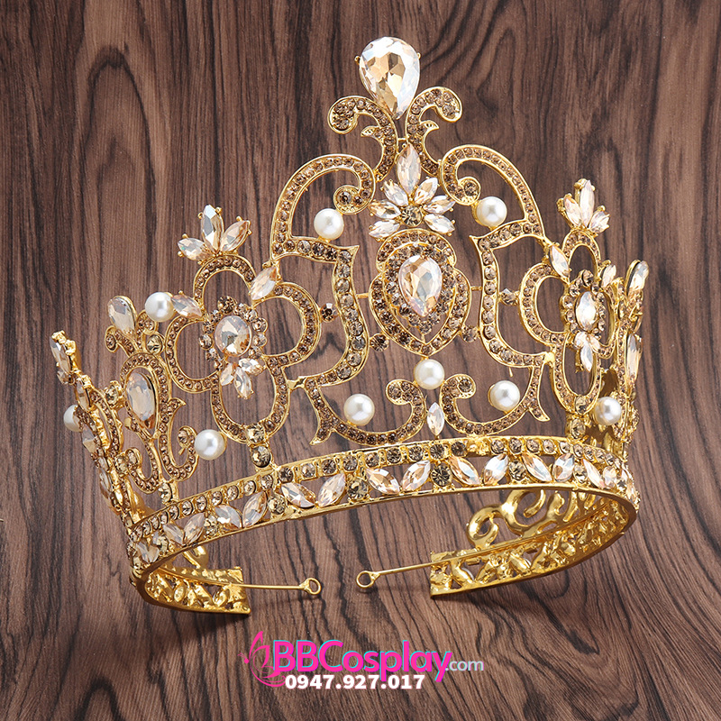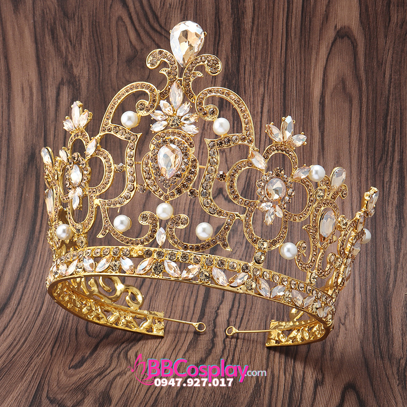 Vương Miện Vàng Đính Kim Cương Thời Trang Loại Cao 16Cm