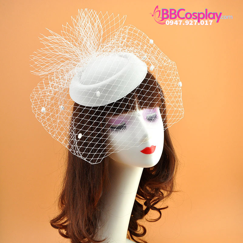 Nón cocktail cổ điển màu trắng