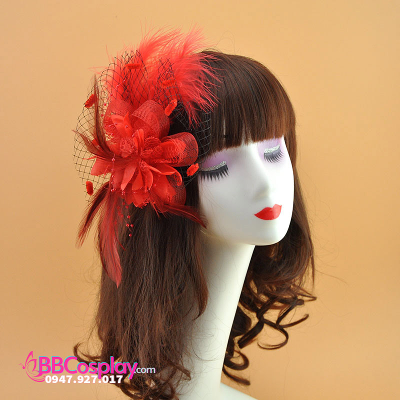 Nón Cocktail Cổ Điển Dạng Lông Vũ - Màu Đỏ
