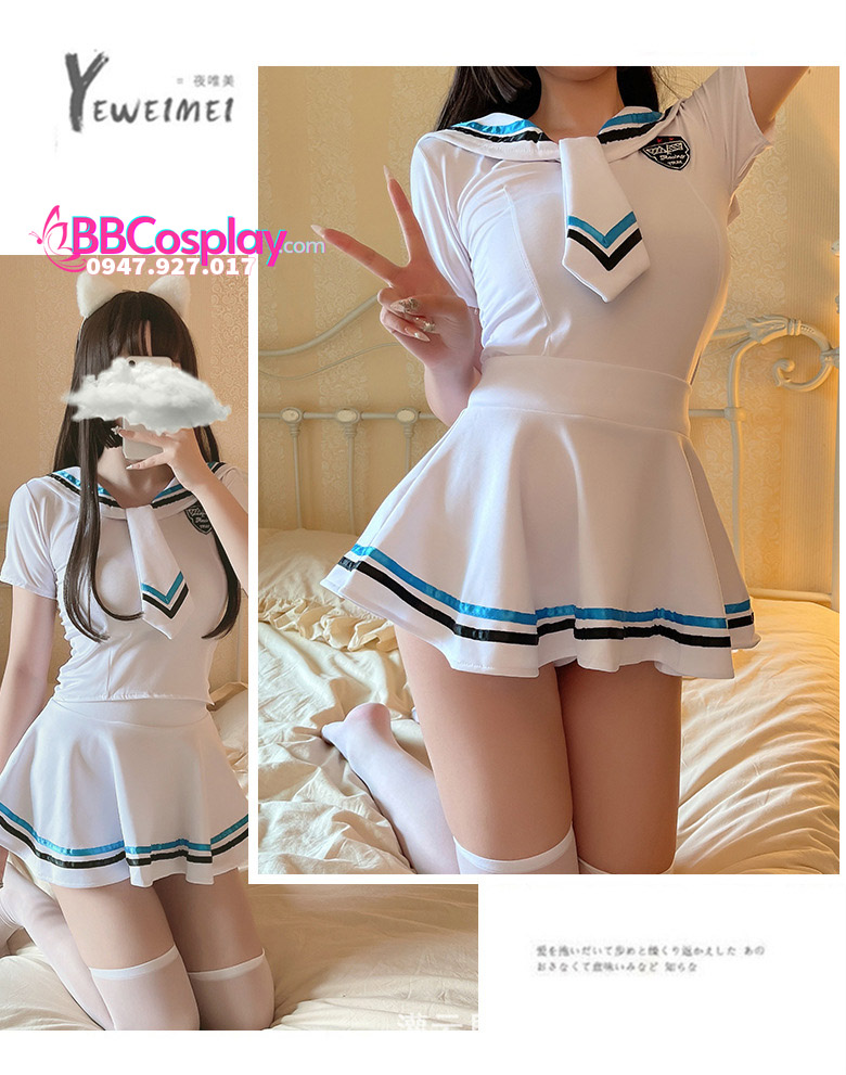 Đồ Nữ Sinh Thủy Thủ Trắng Viền Xanh Đen