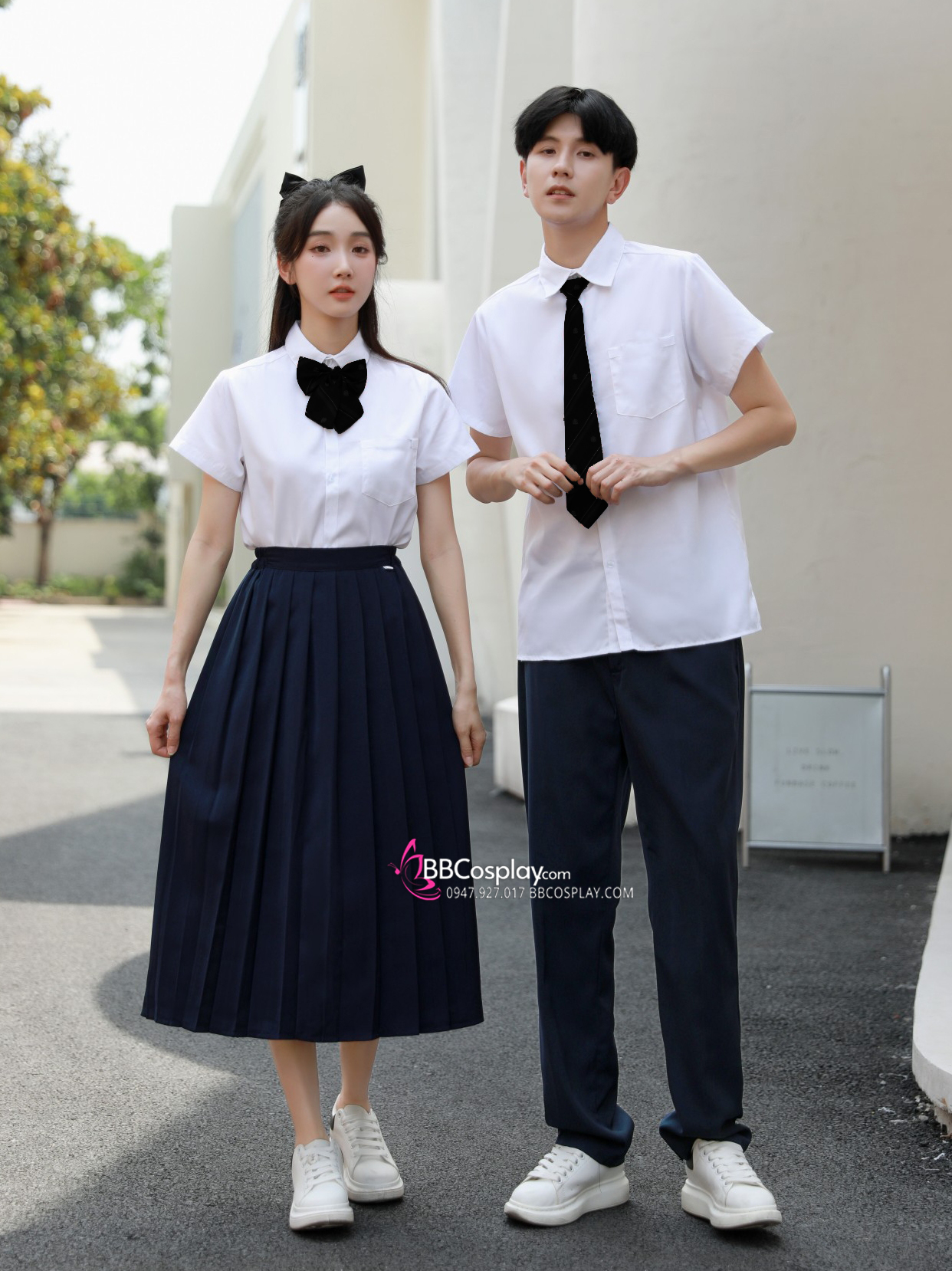 set nam ( áo sơ mi trắng tay ngắn + quần đen/ xanh đen + cà vạt ( màu tự chọn))