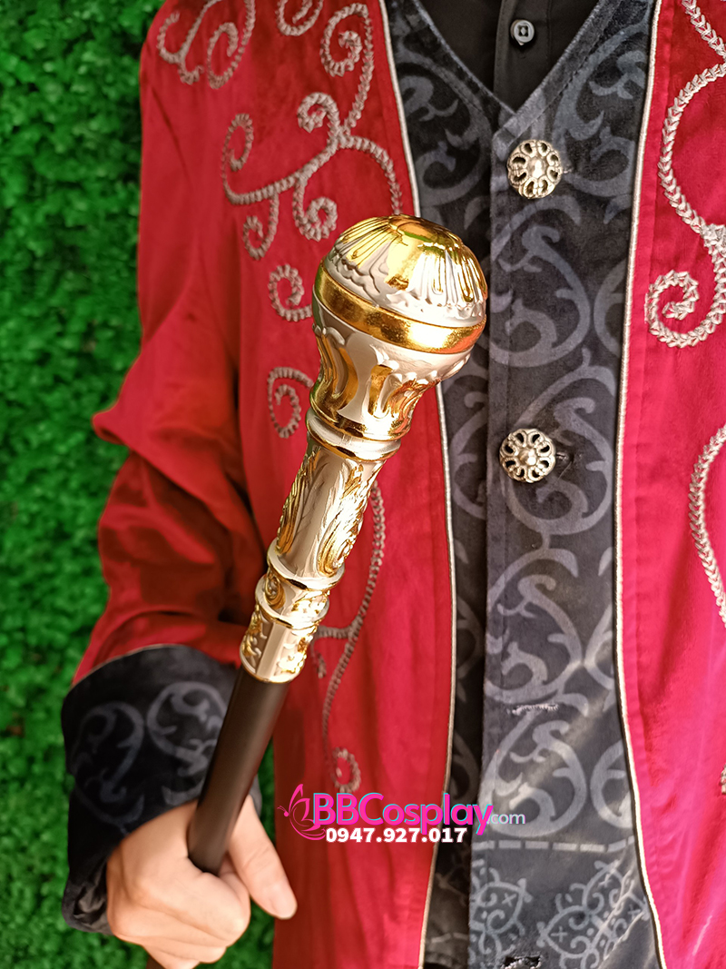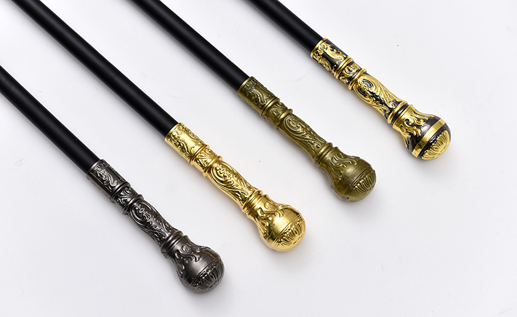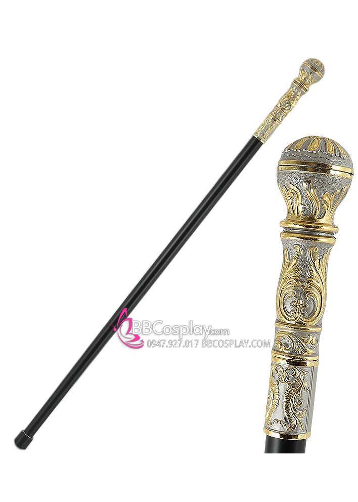 Gậy Quý Tộc Đầu Tròn Vàng Trắng Khắc Hoa Văn Đơn Giản