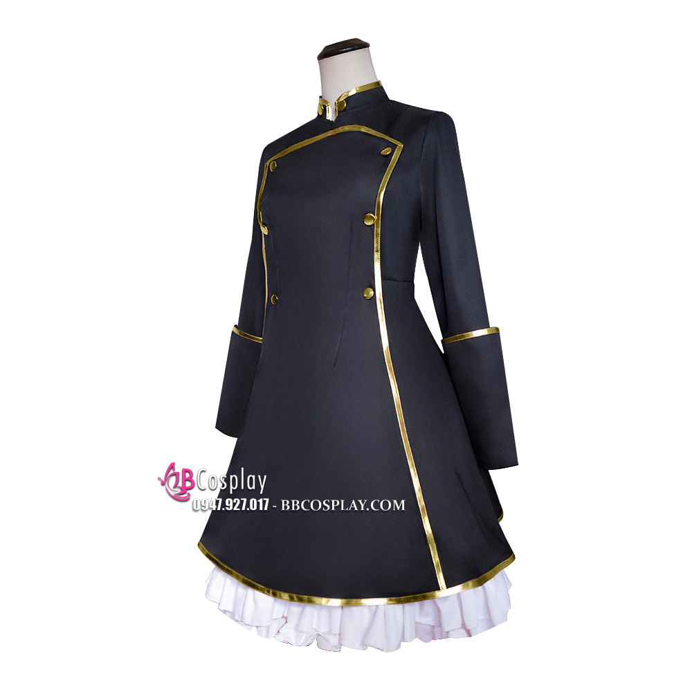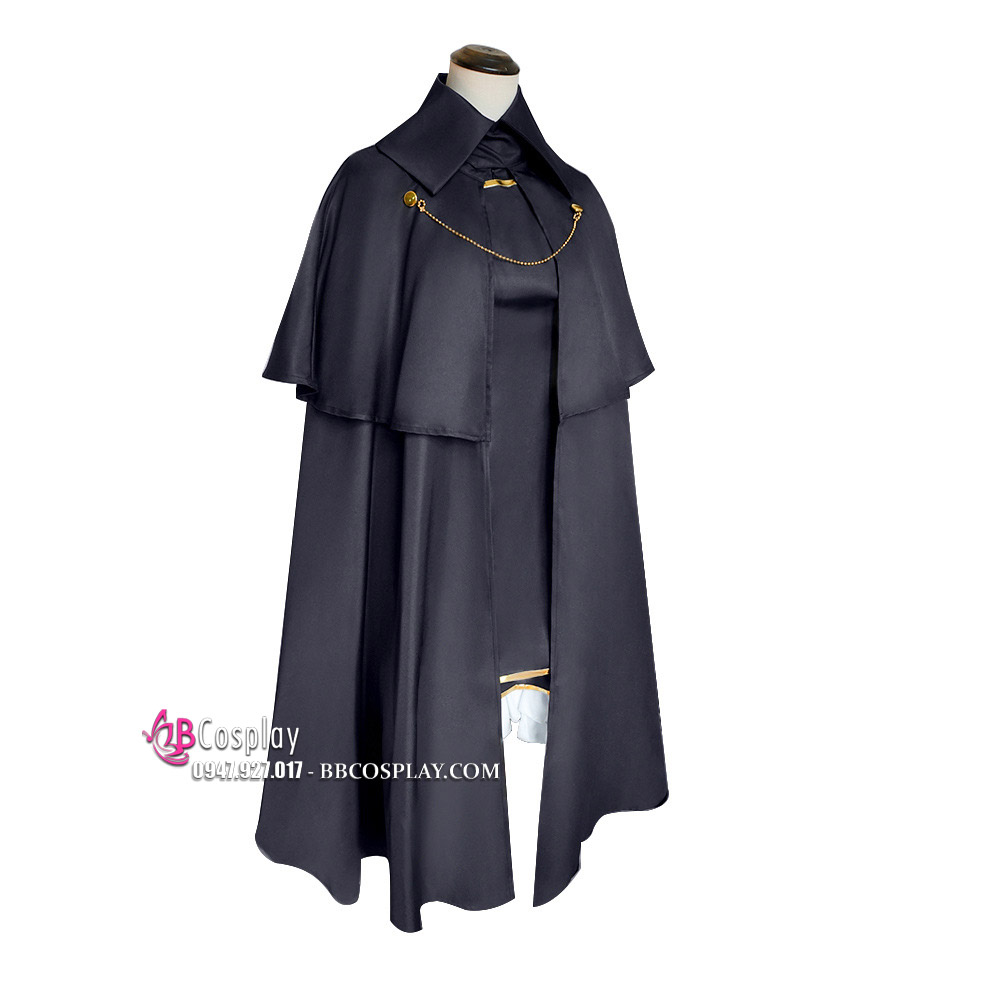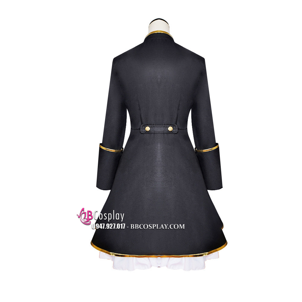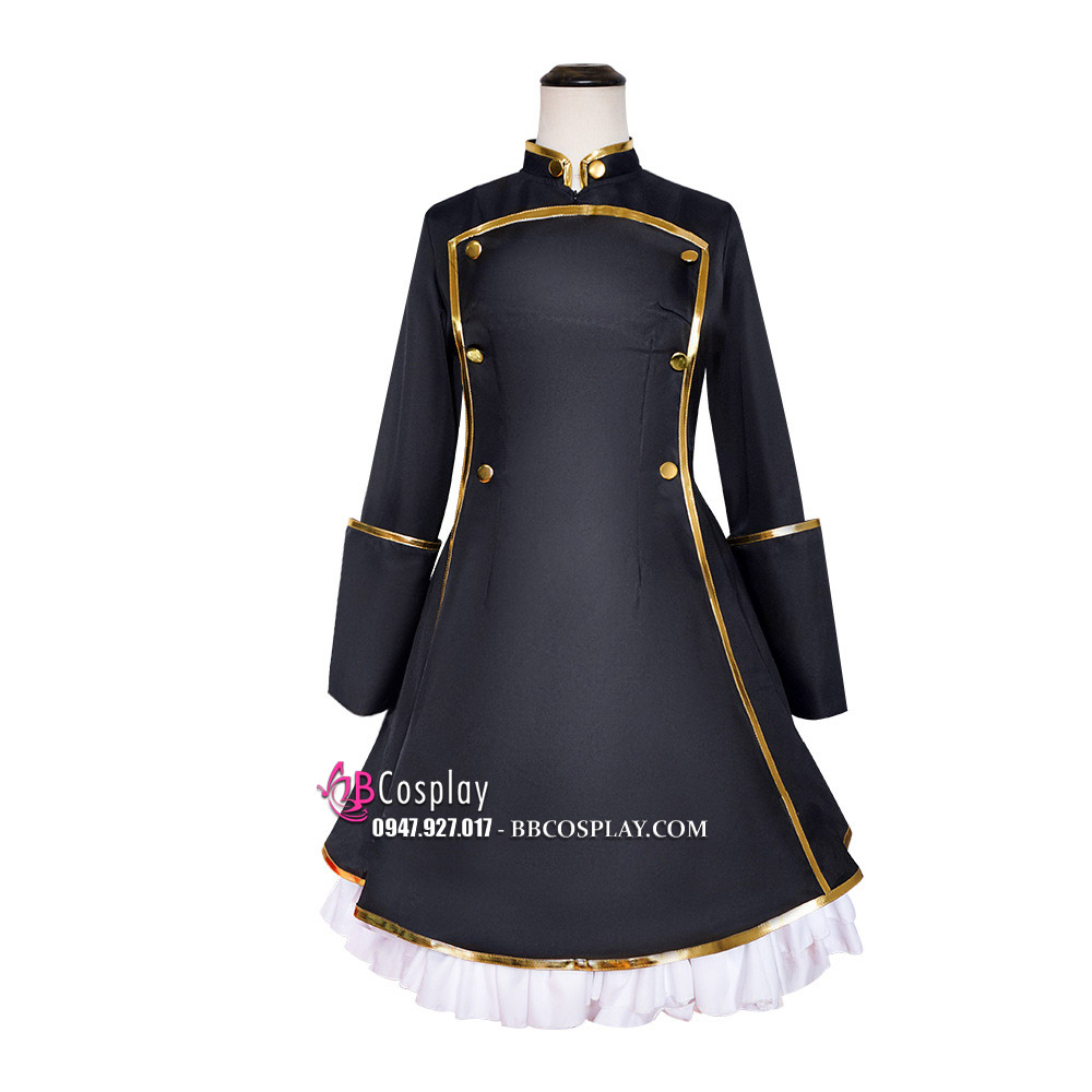 Trang Phục Lolita Đen Trắng Thêu Hoạ Tiết Chân Mèo Kèm Chuông Cổ