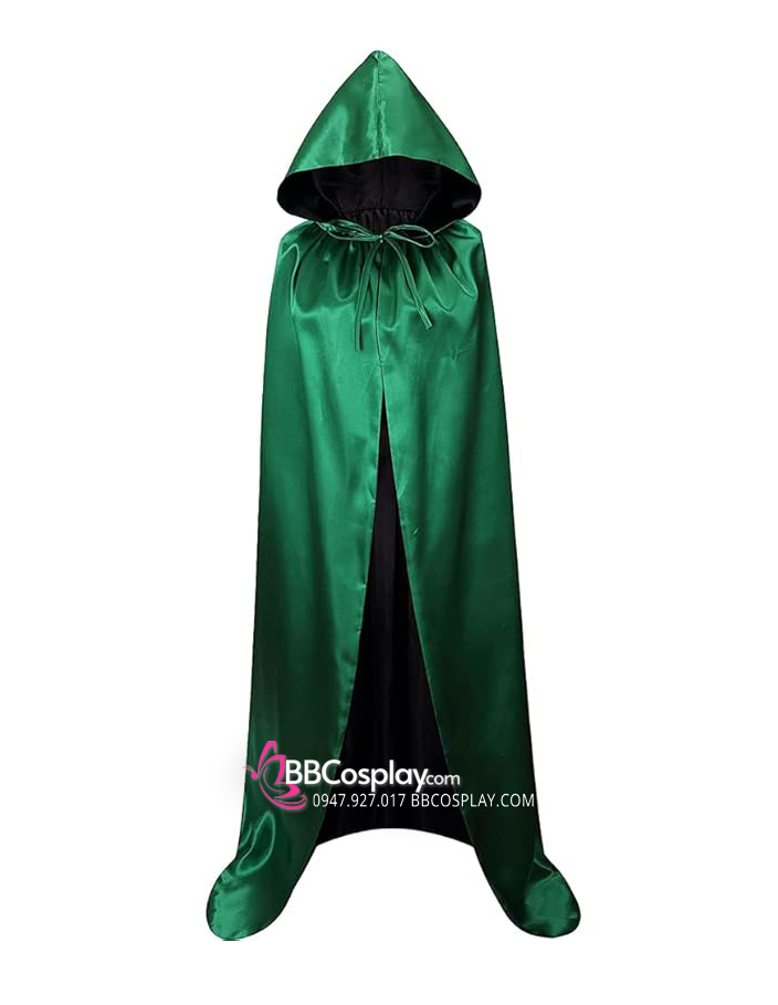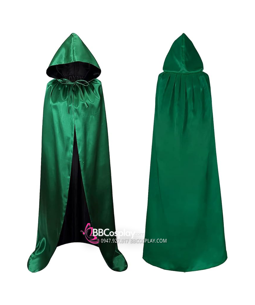 Áo Choàng 2 Lớp Vải Phi Bóng Có Nón - Xanh Lá Đen