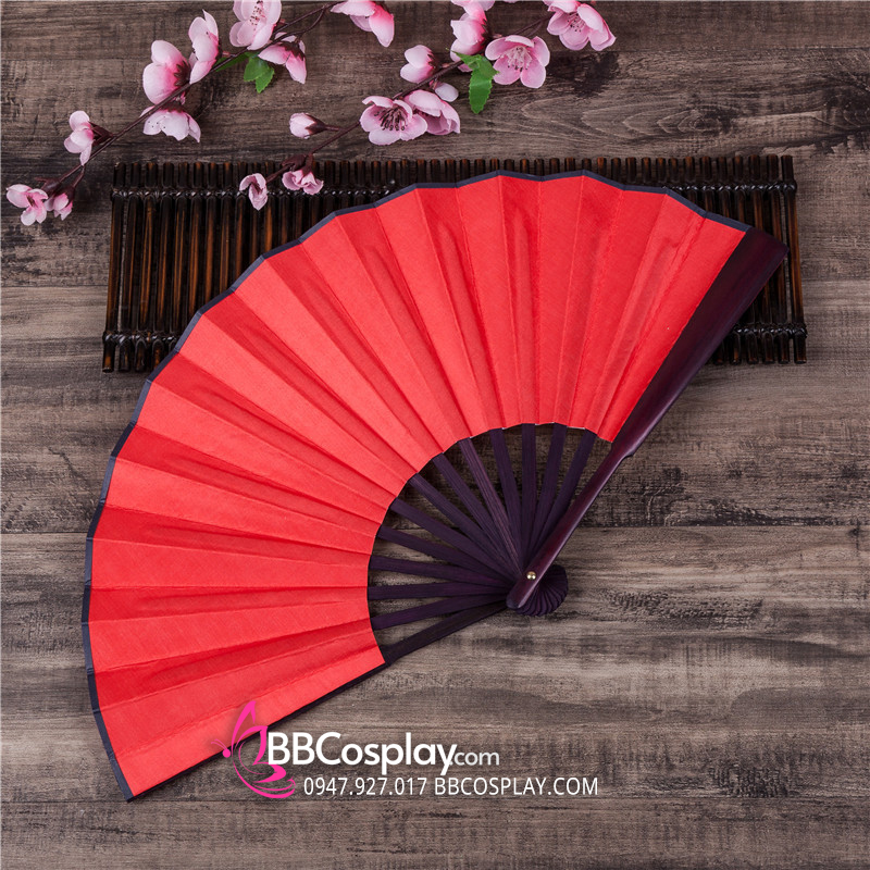 Quạt Xếp Trơn Cán Gỗ Mẫu Đỏ