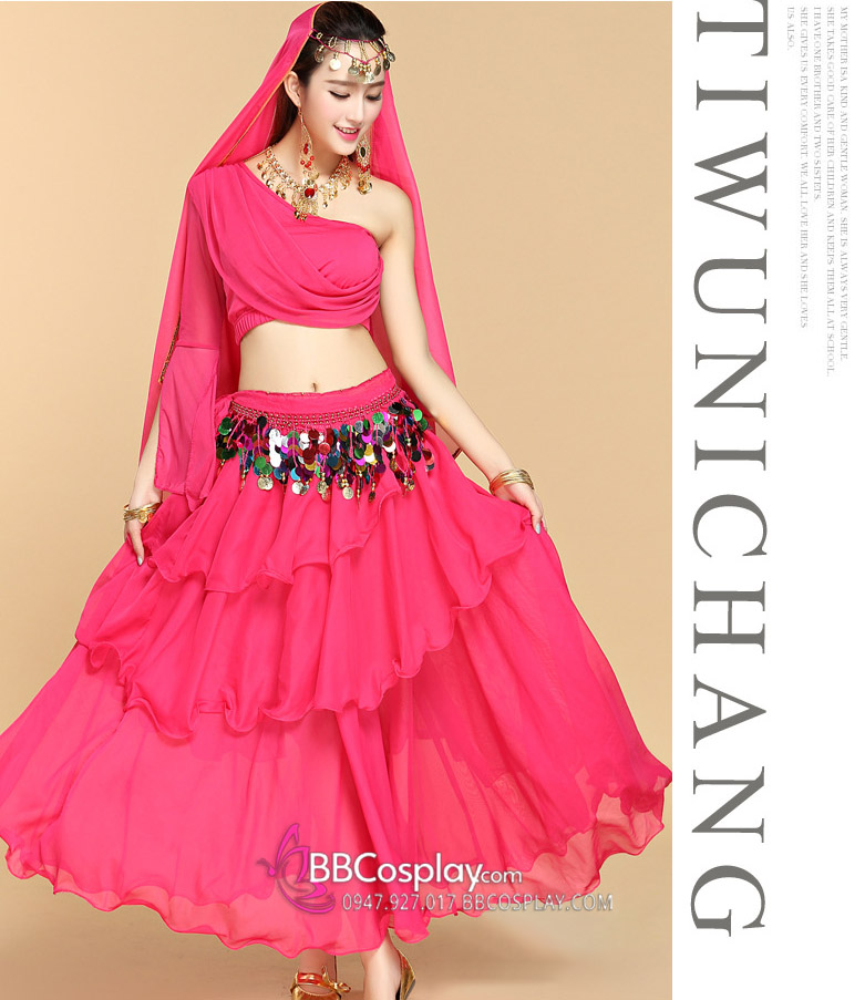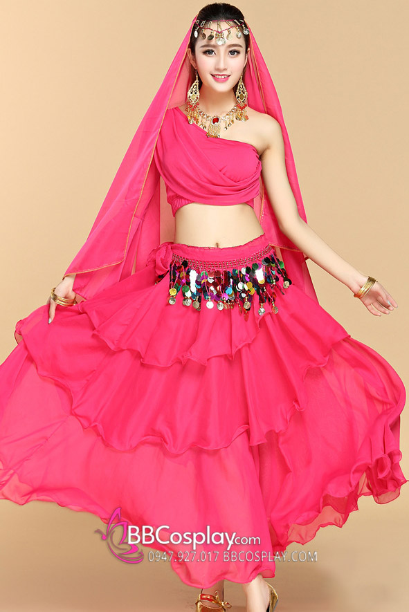 Trang Phục Múa Bụng Belly Dance Vai Chéo Màu Hồng