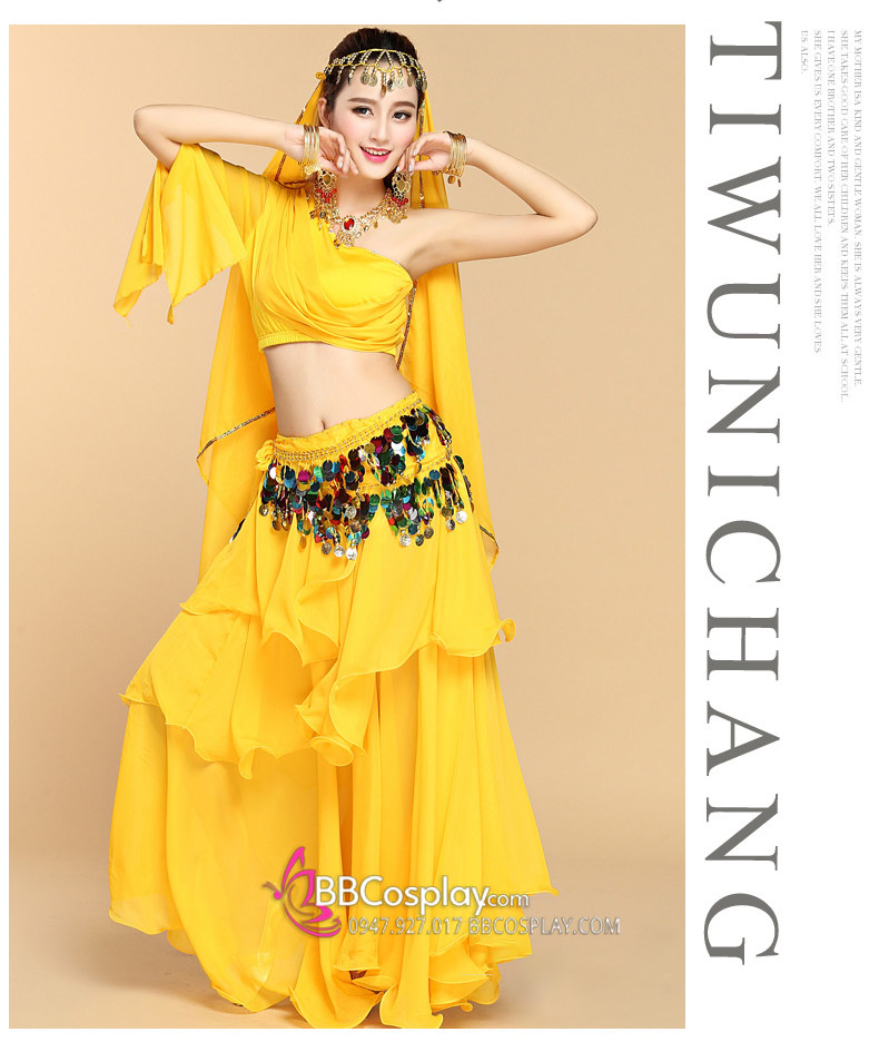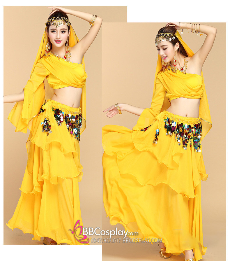 Trang Phục Múa Bụng Belly Dance Vai Chéo Màu Vàng