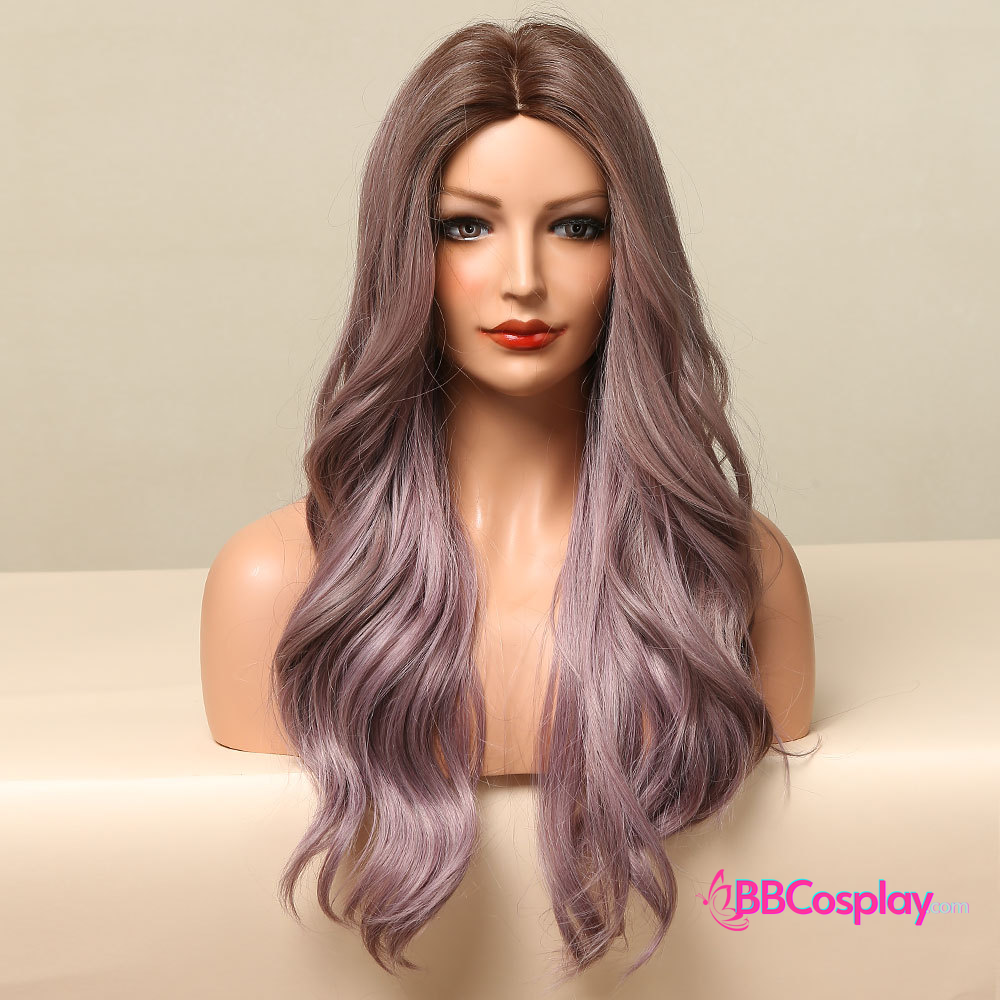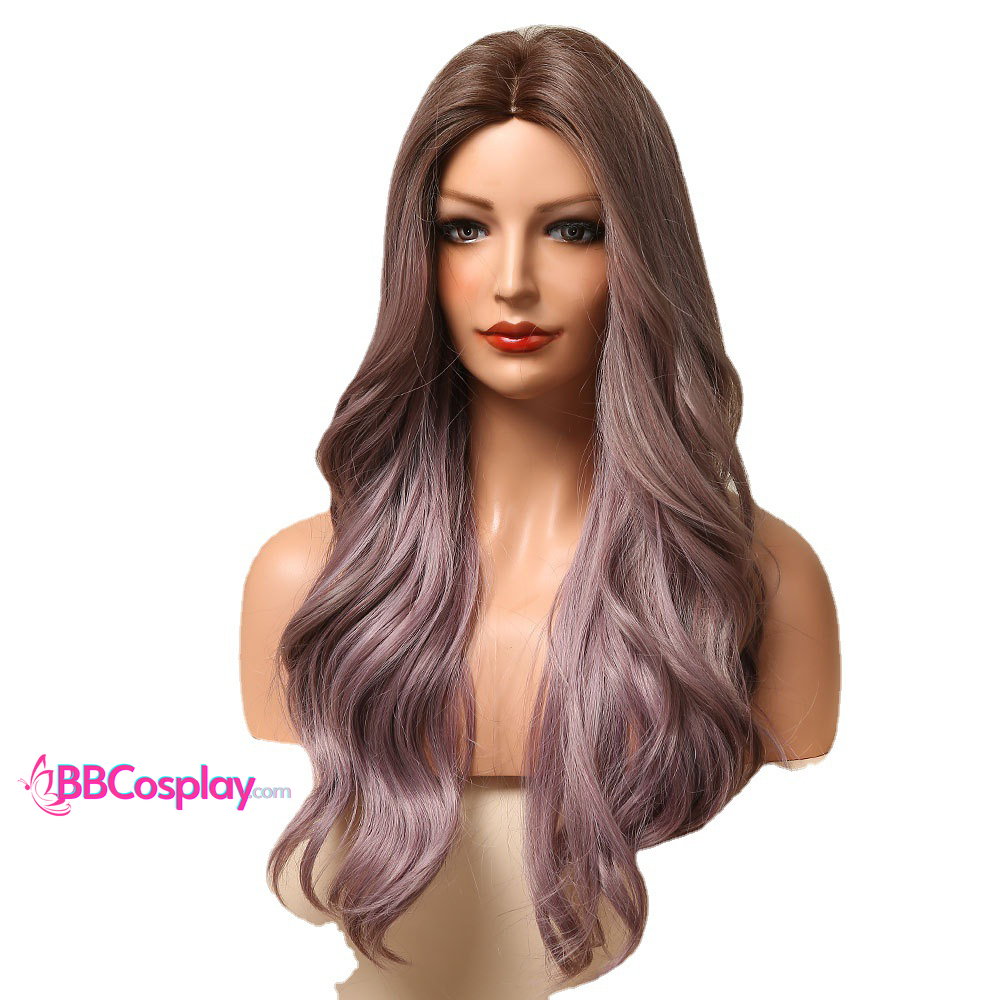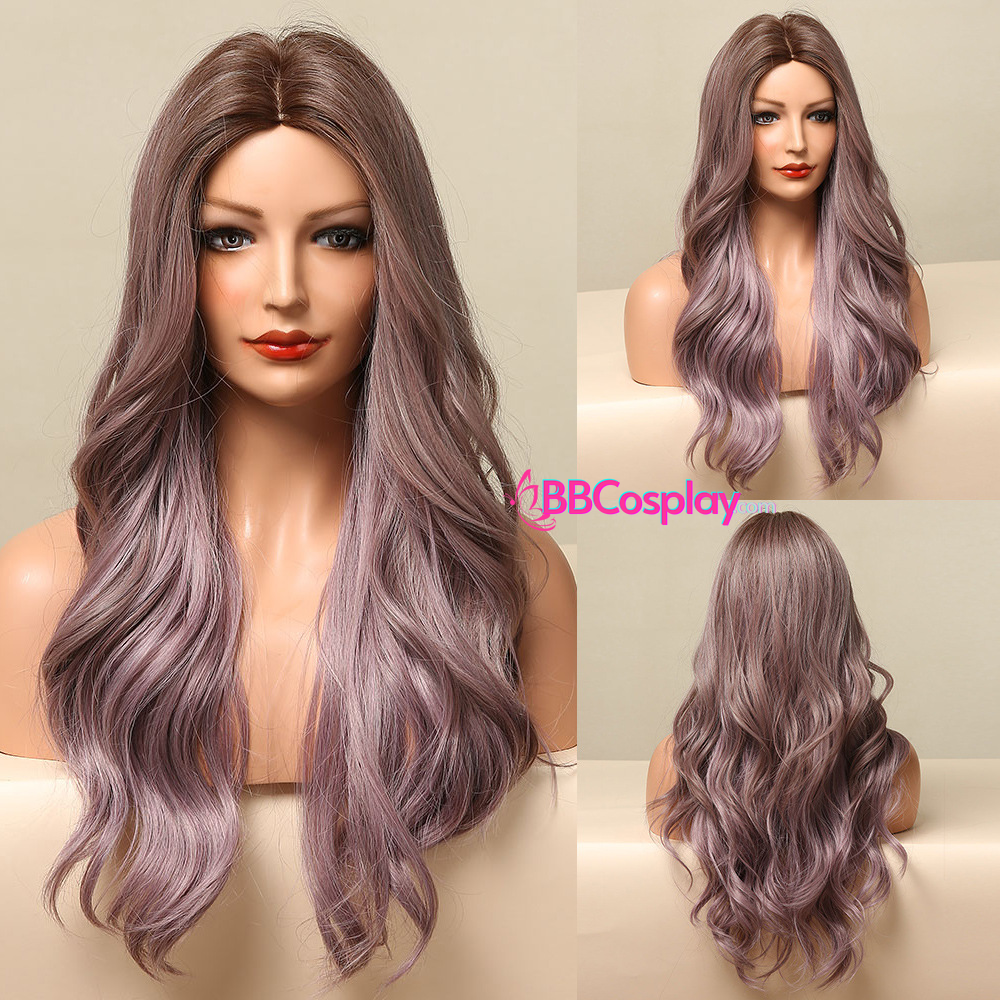 Tóc Xoăn Dài 2 Mái Màu Tím Khói