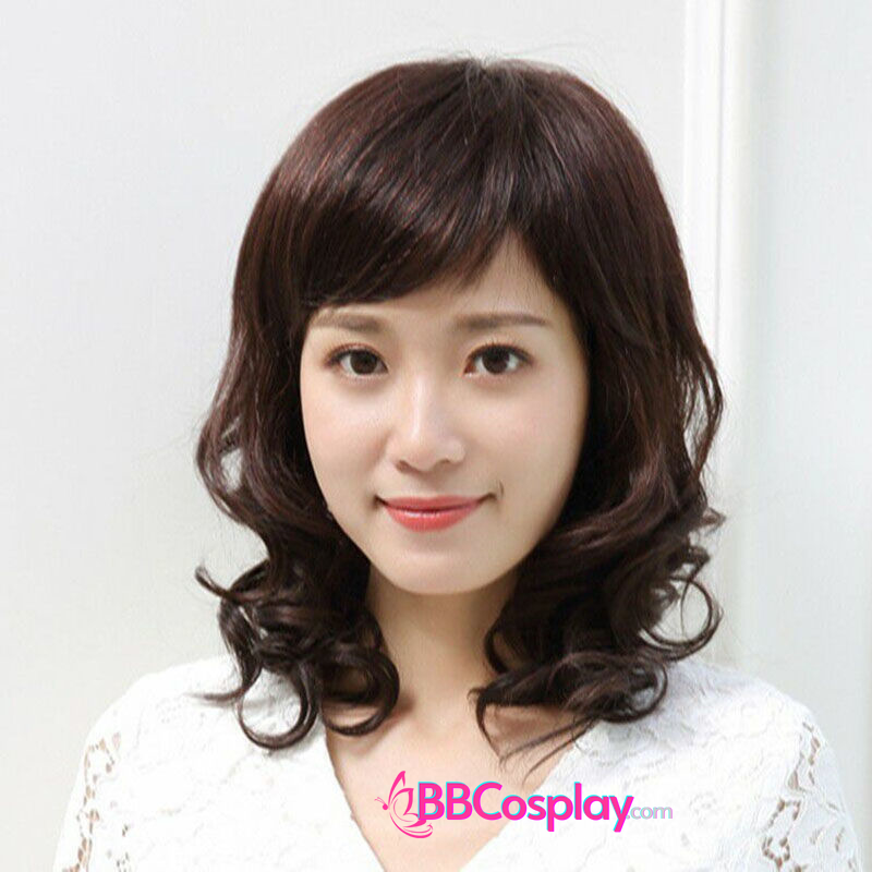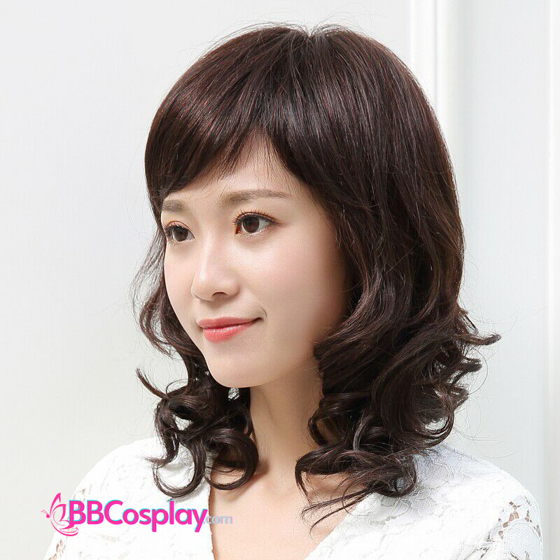 Tóc Xoăn Ngắn Ngang Vai Màu Nâu Đen