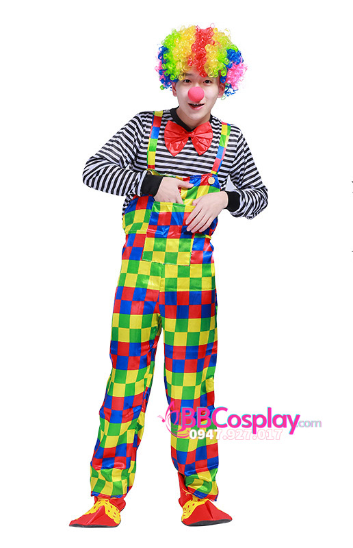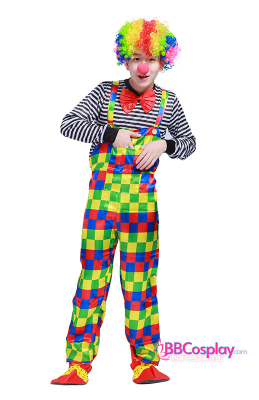 Trang Phục Chú Hề Pháp Nam Áo Sọc Đen Trắng Quần Ca Rô