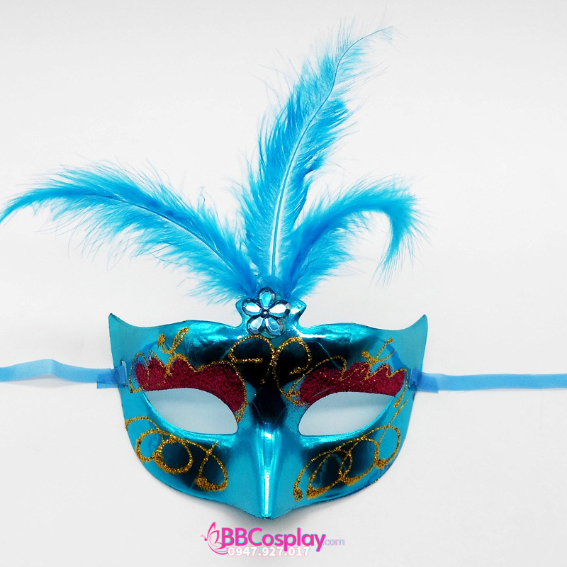 Mặt Nạ Nửa Trơn Có Lông Vũ - Màu Xanh Dương