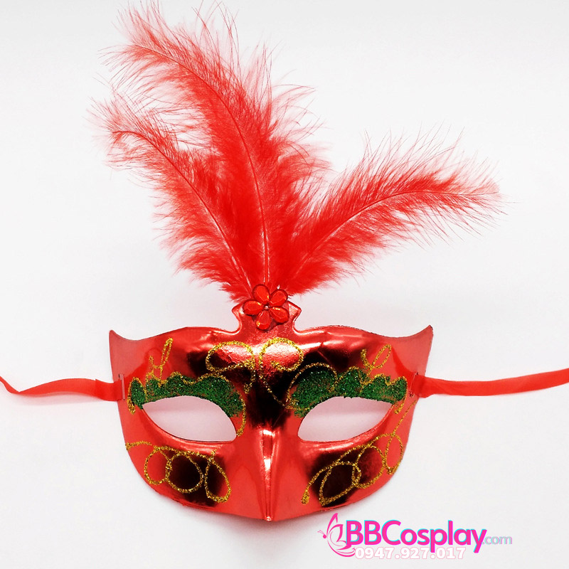 Mặt Nạ Nửa Trơn Có Lông Vũ - Màu Đỏ