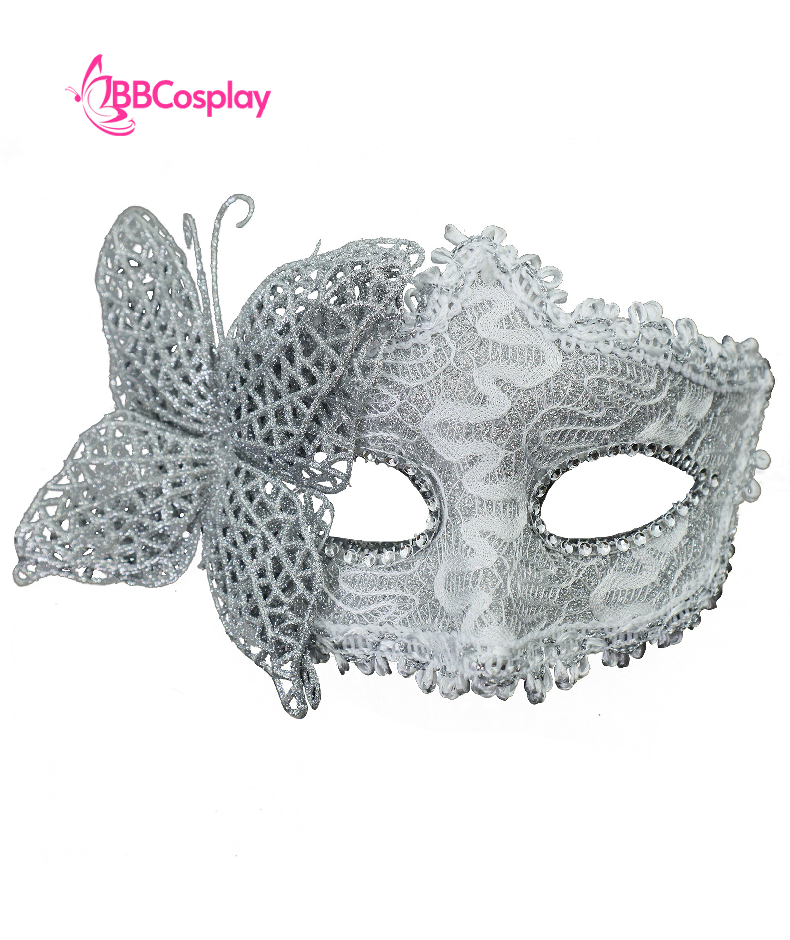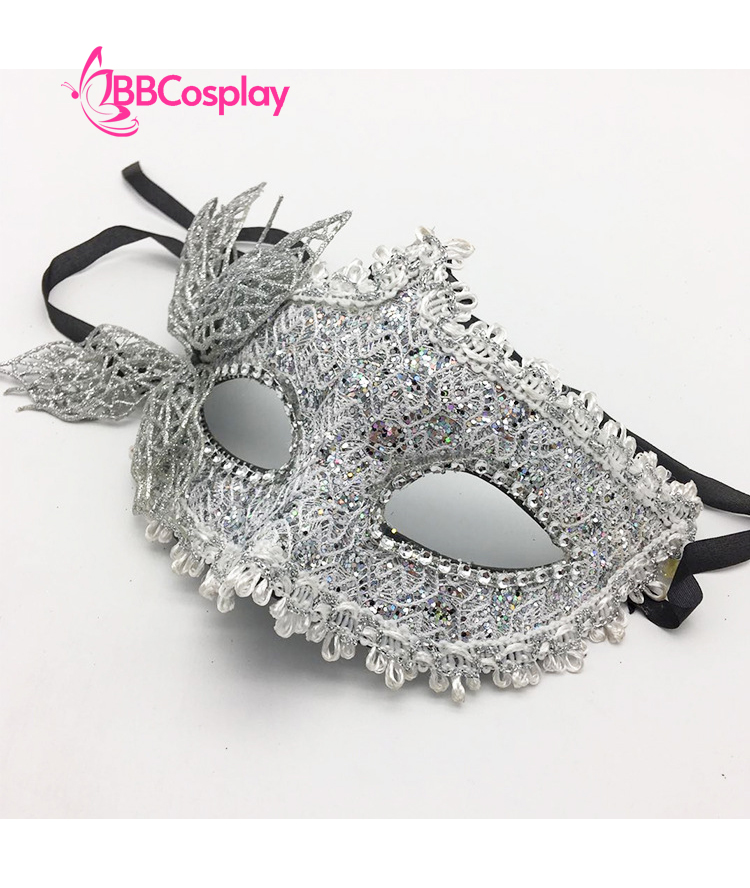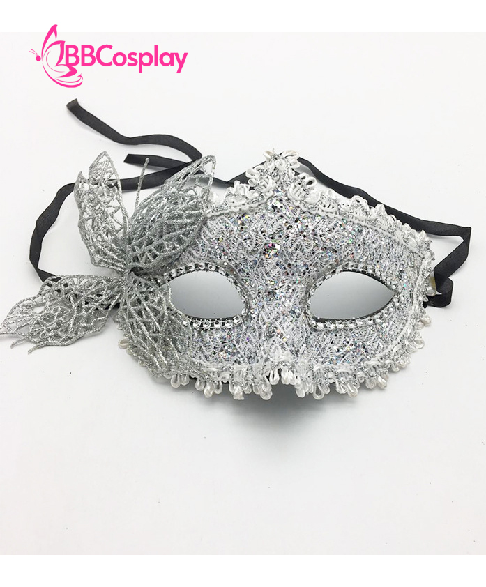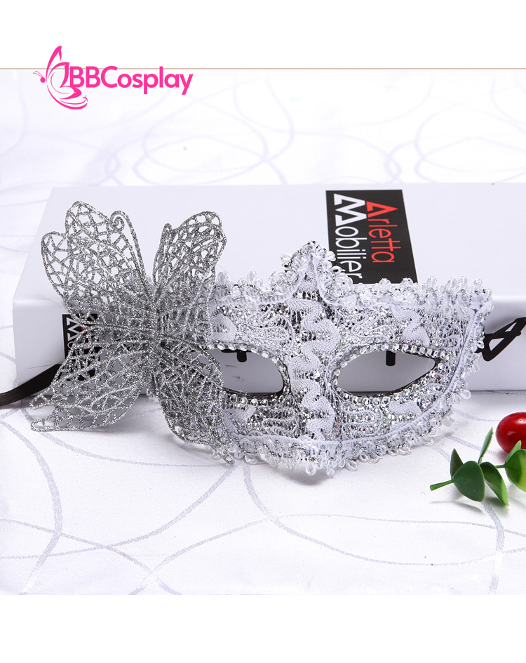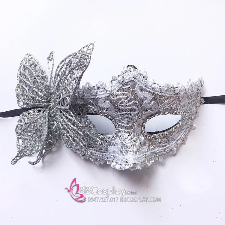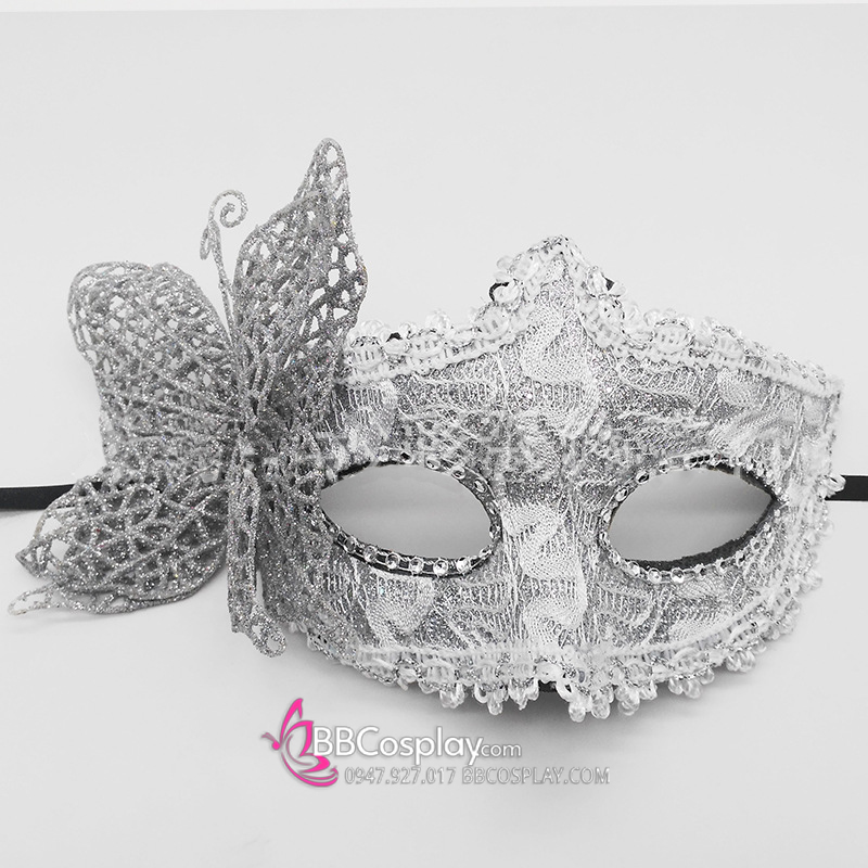 Mặt Nạ Nửa Mặt Ren Bướm Bạc