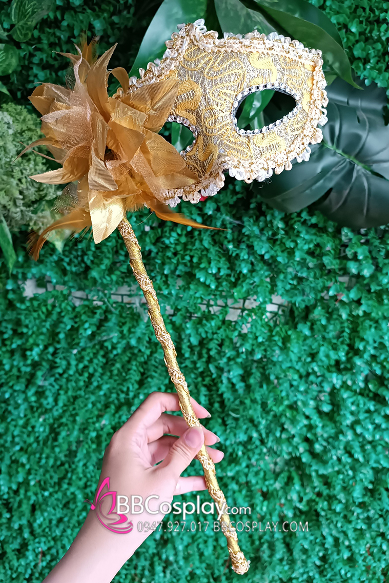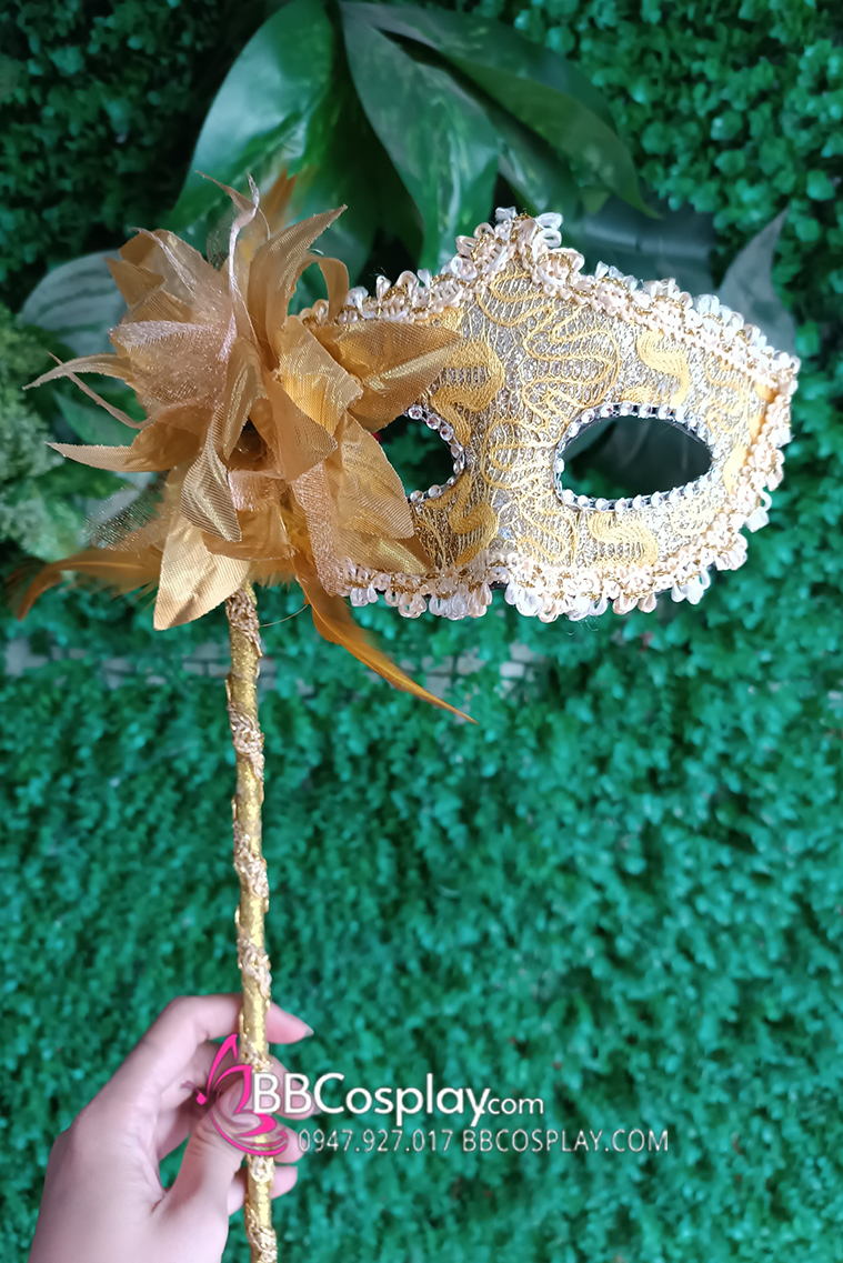 Mặt Nạ Cầm Tay - Vàng Cài Hoa Sang Trọng