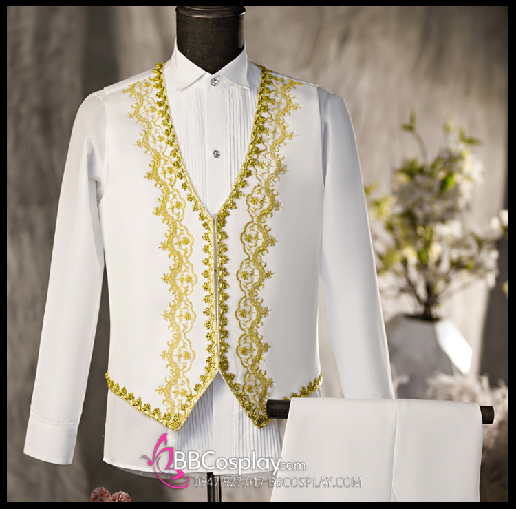 Vest Hoàng Gia Trắng Vest Phục Hưng Cổ Điển