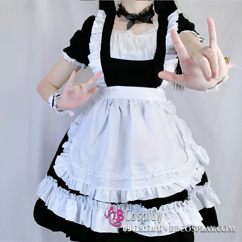 Đồ Nàng Hầu Maid Đen Tạp Dề Trắng Kèm Nhiều Nơ