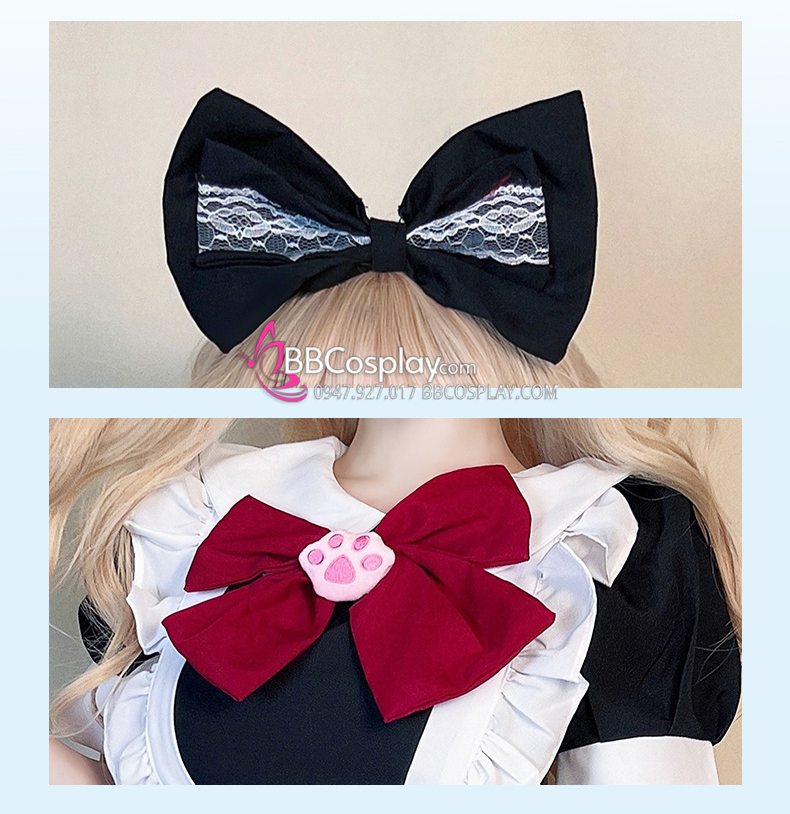 Đồ Nàng Hầu Maid Đen Tạp Dề Trắng Kèm Nhiều Nơ