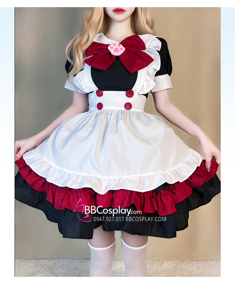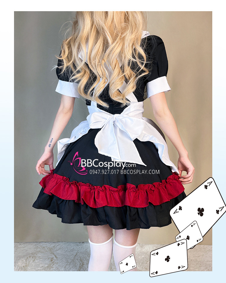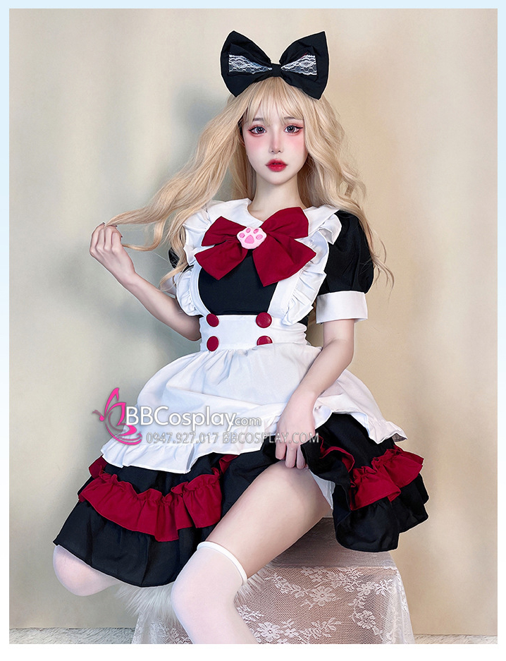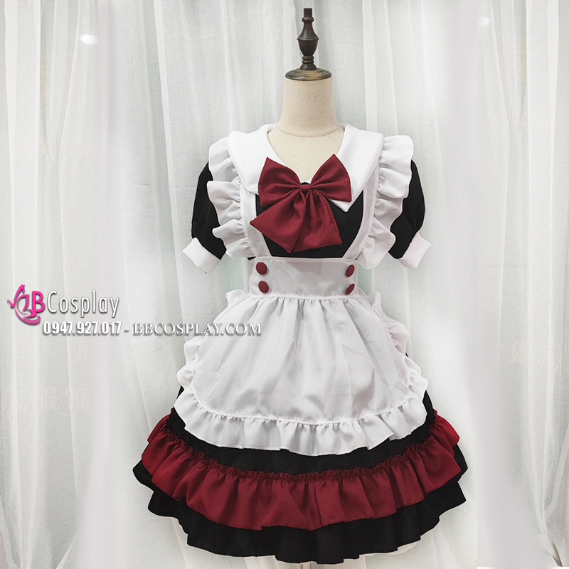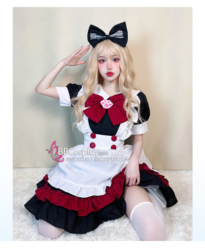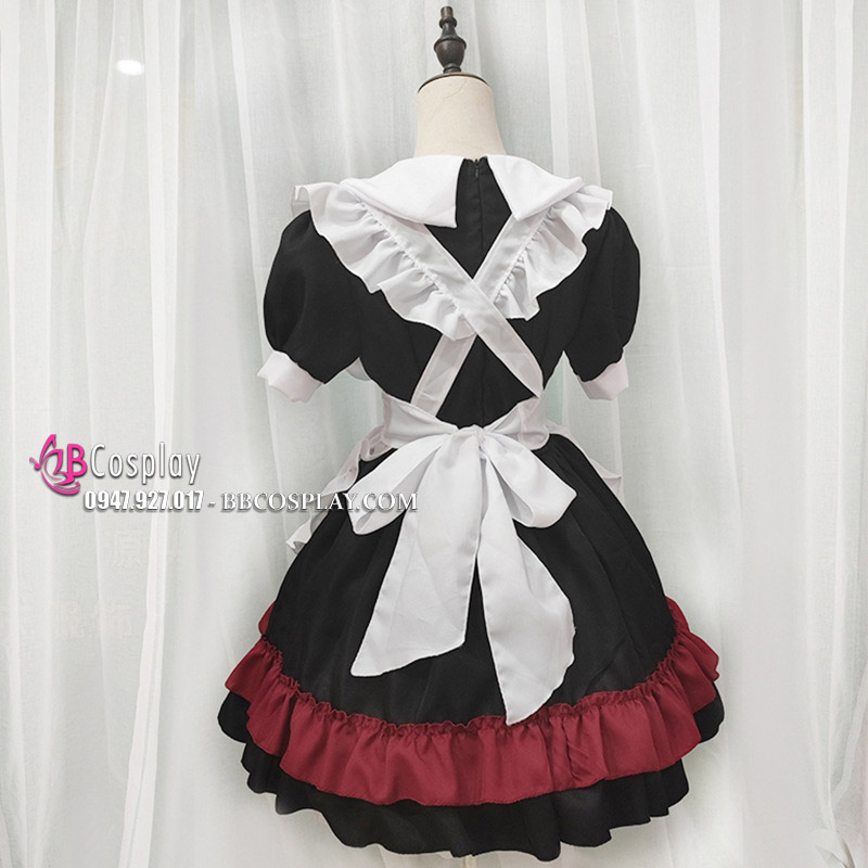 Đồ Nàng Hầu Maid Đen Đỏ Tạp Dề Trắng