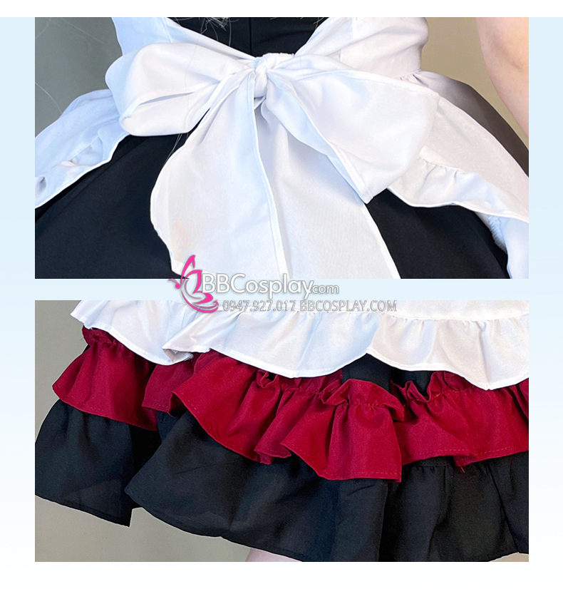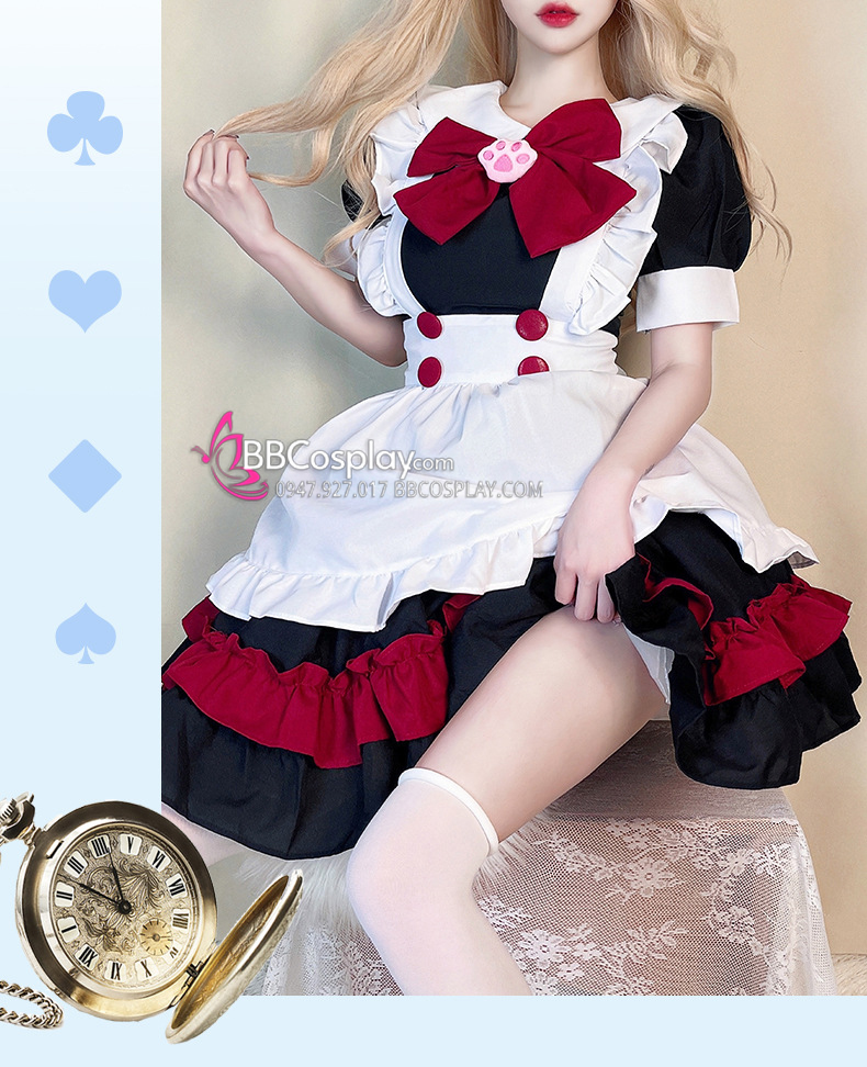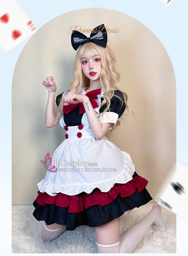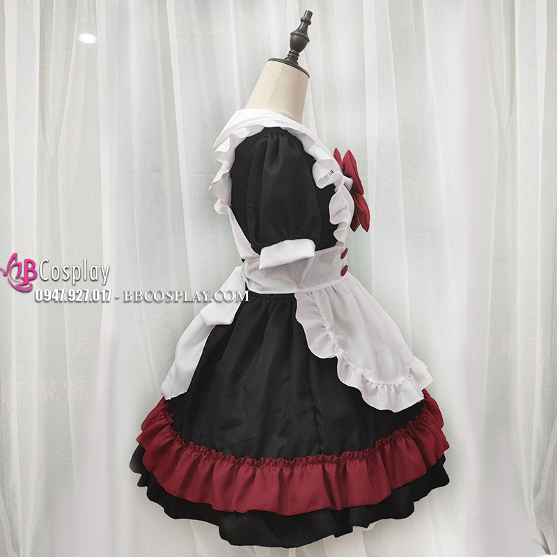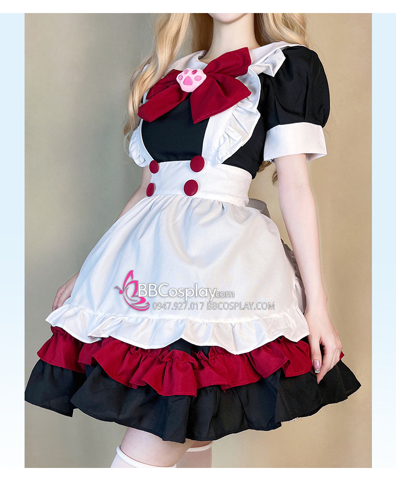 Đồ Nàng Hầu Maid Đen Đỏ Tạp Dề Trắng