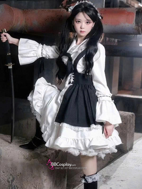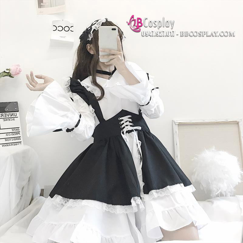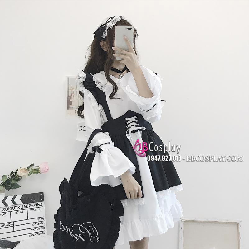 Đồ Nàng Hầu Maid Đen Trắng Tay Dài Phong Cách Lolita