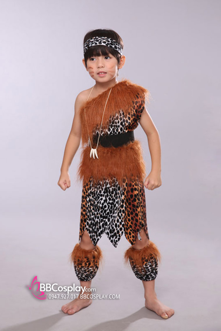 Đồ Thổ Dân Da Beo Cho Bé Trai Viền Lông Vai Chéo