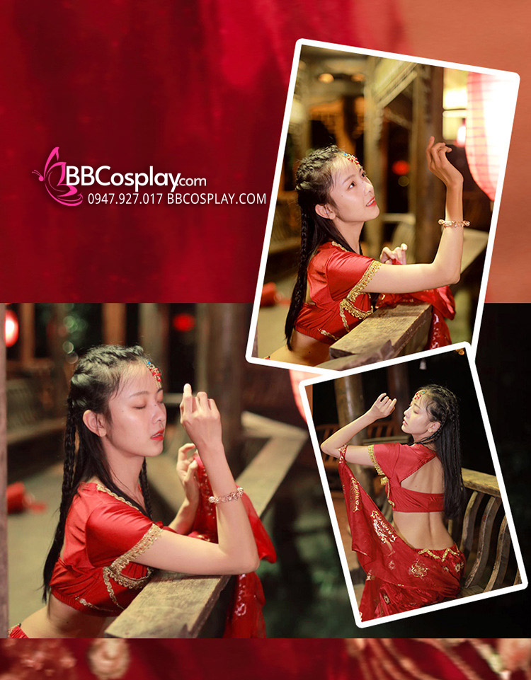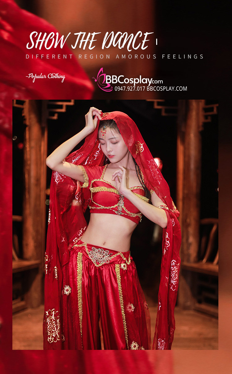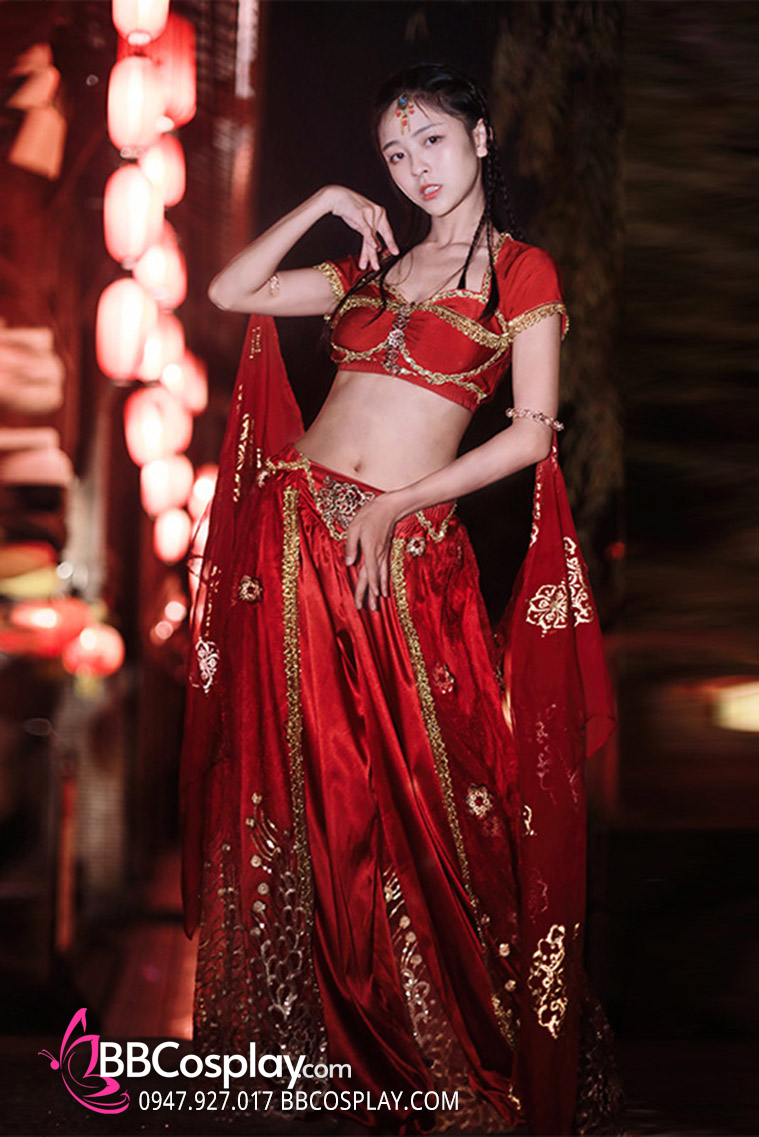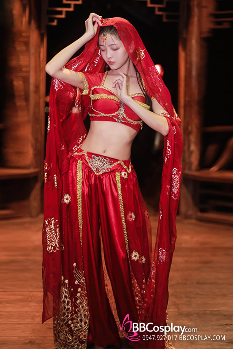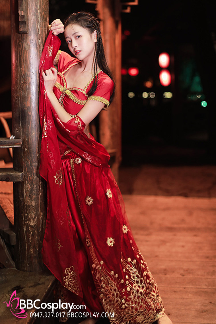 Trang Phục Công Chúa Ba Tư Thêu Khổng Tước - Màu Đỏ