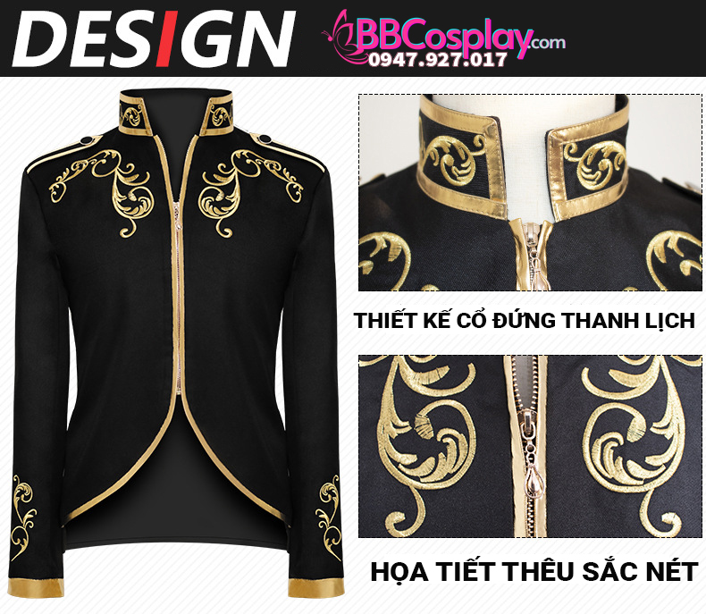 Áo Phục Hưng Đen Viền Vàng