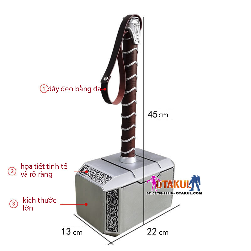 Búa Mjolnir của Thor đúc PU 45cm - có dây