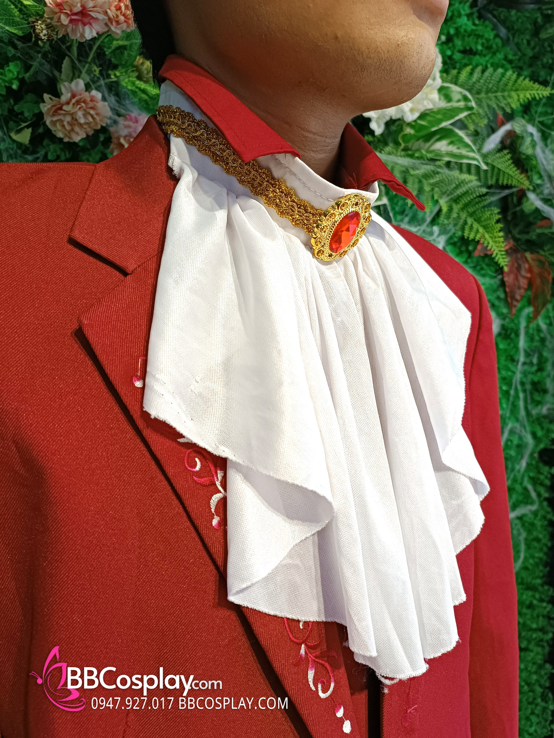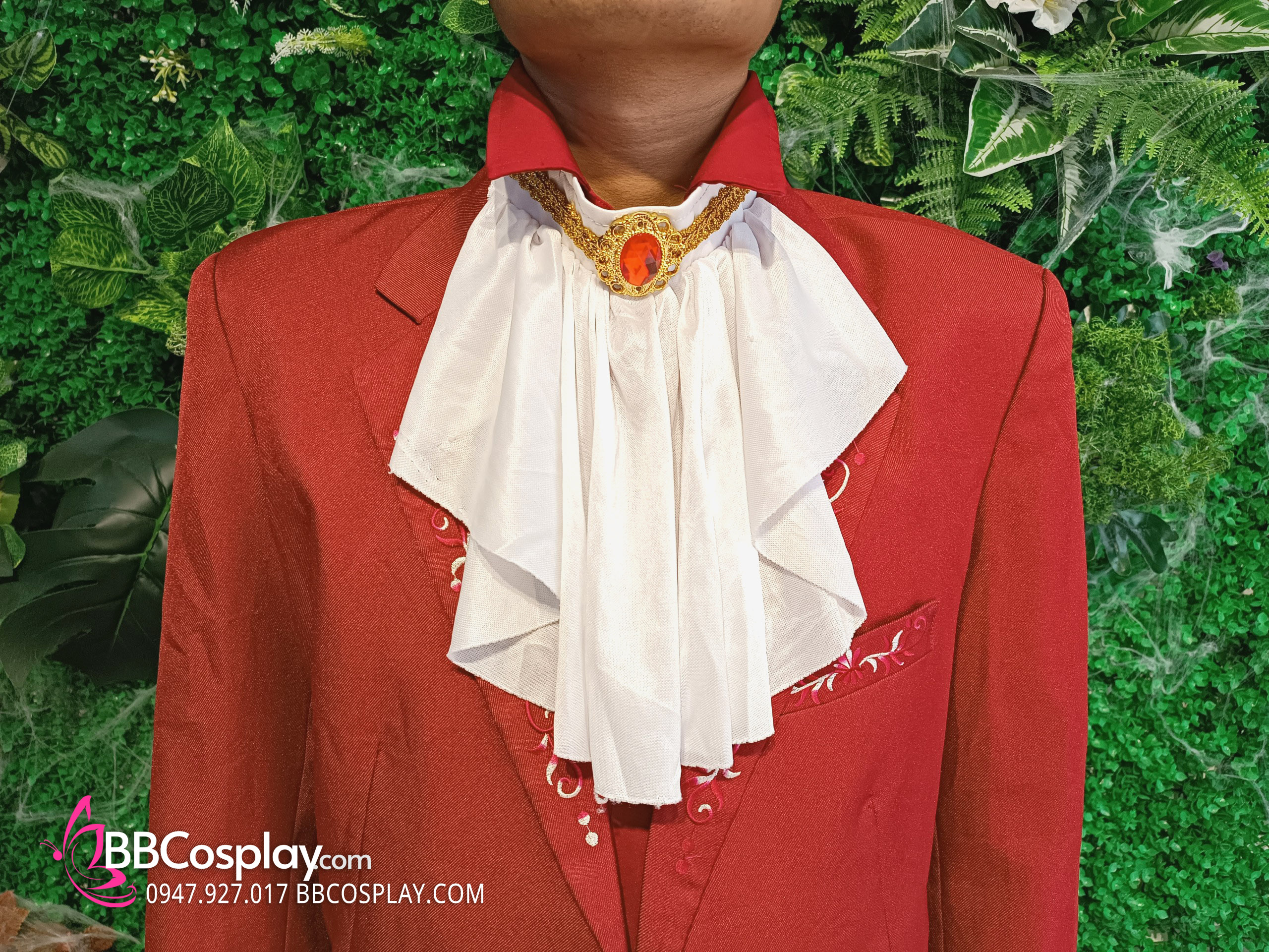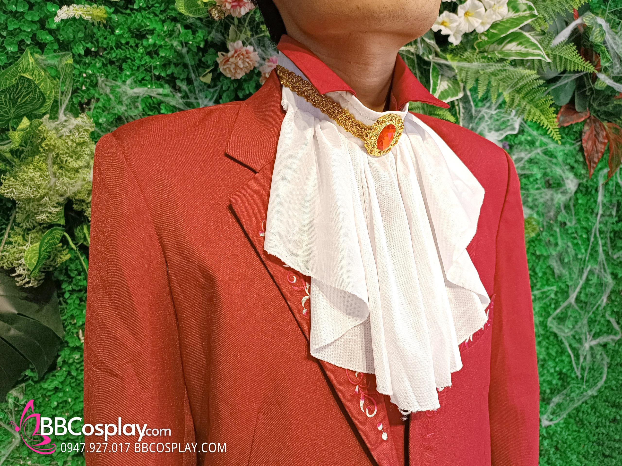 Trang Phục Nàng Hầu Cổ Lá Sen Kèm Tạp Dề Caro - Màu Đỏ