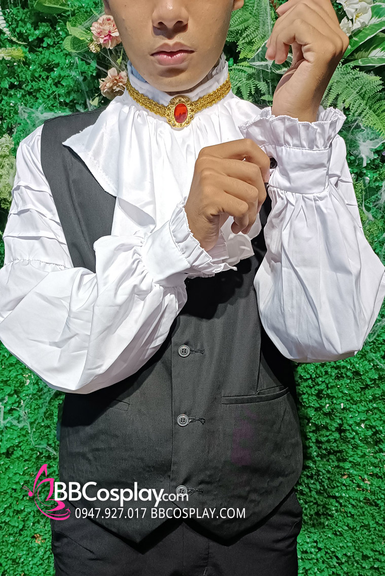 Trang Phục Nàng Hầu Nhật Đen Tạp Dề Trắng Cổ Áo Lá Sen