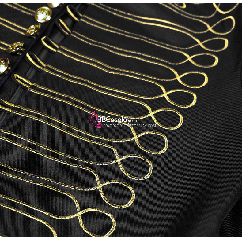 Vest Cổ Điển Phục Hưng Edwardian Đen Viền Chỉ Vàng