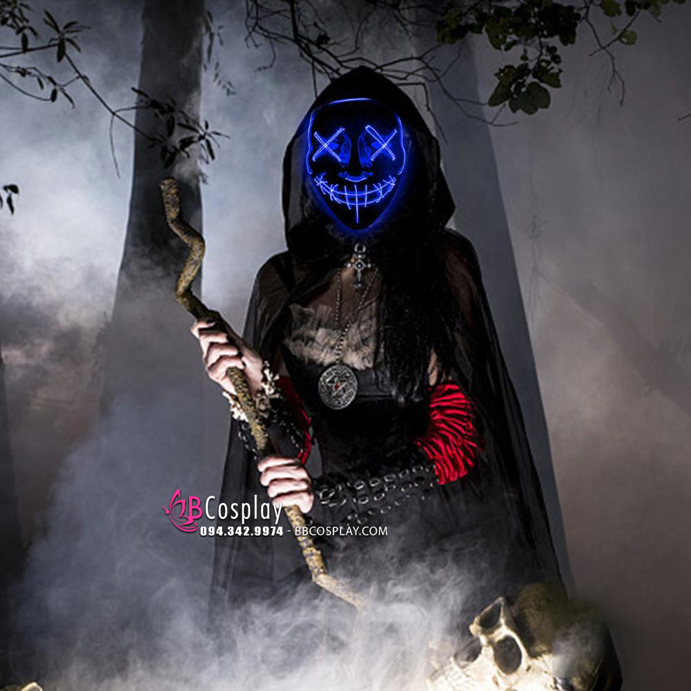 Mặt Nạ Halloween Có Đèn Led Vàng Điện Tử Dùng Pin