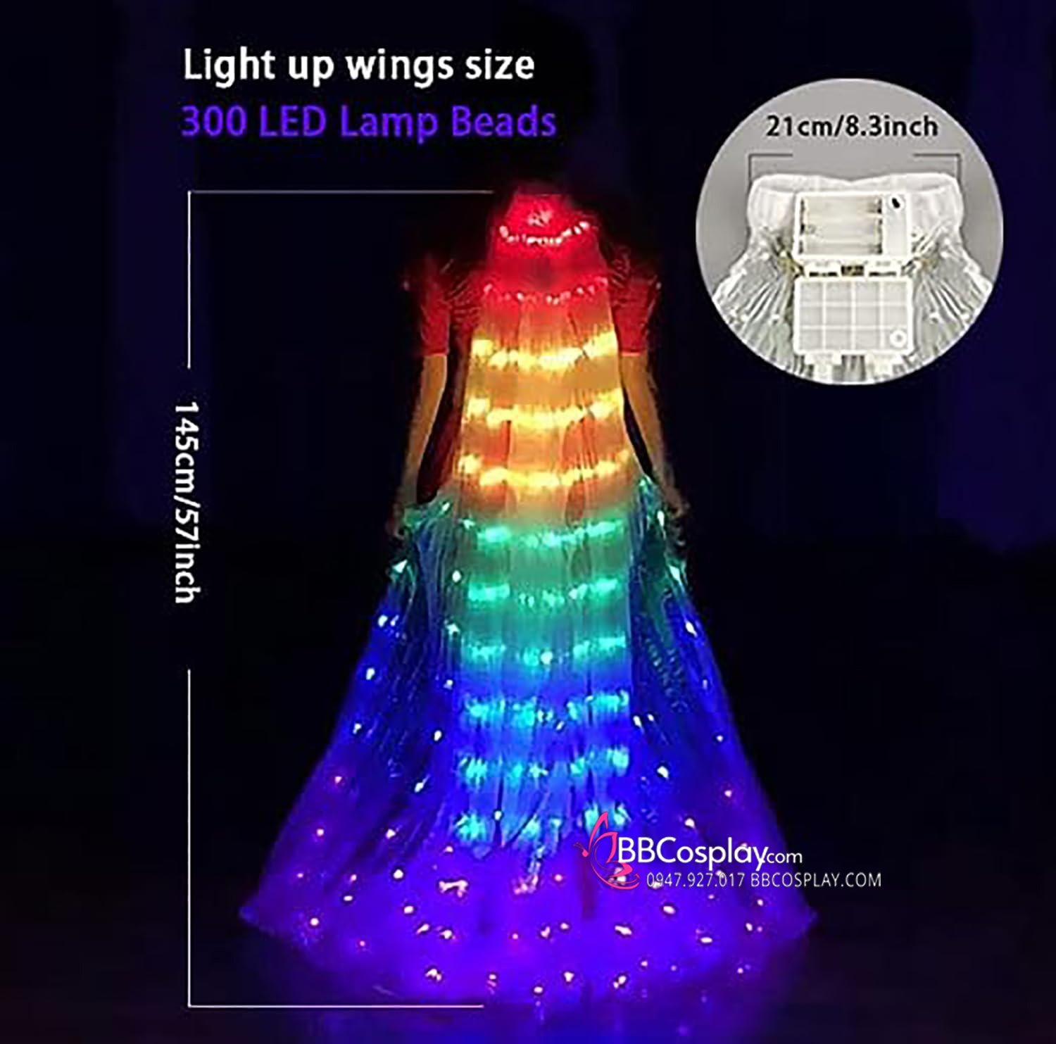 cánh thiên thần có led kèm hộp pin + 2 tay cầm có thể thu gọn hỗ trợ cánh bự hơn