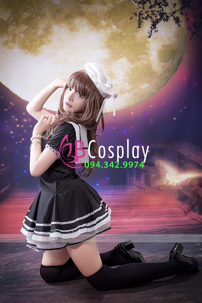 Trang Phục Nàng Hầu Nhật Đen Tạp Dề Trắng Cổ Áo Lá Sen